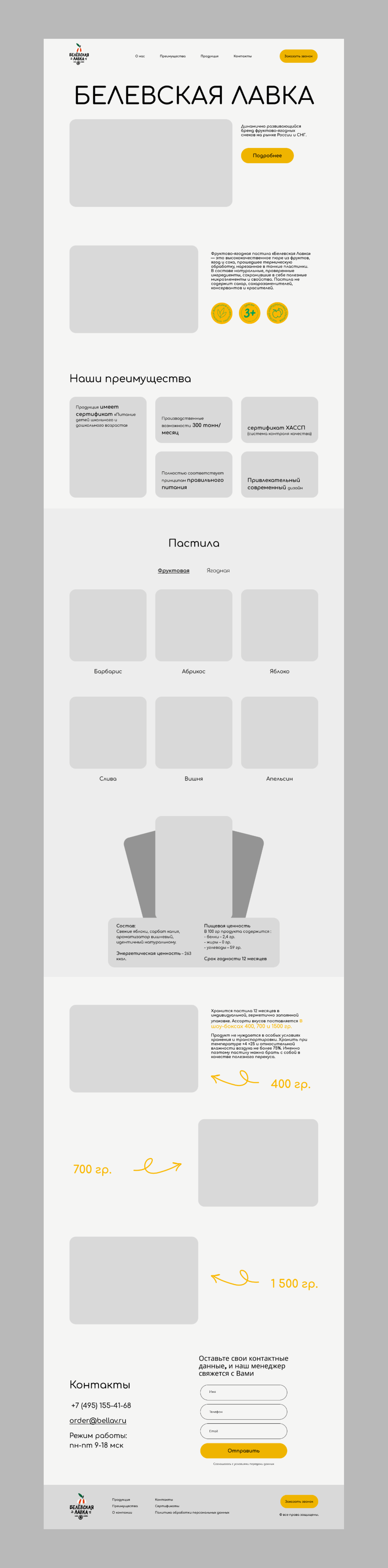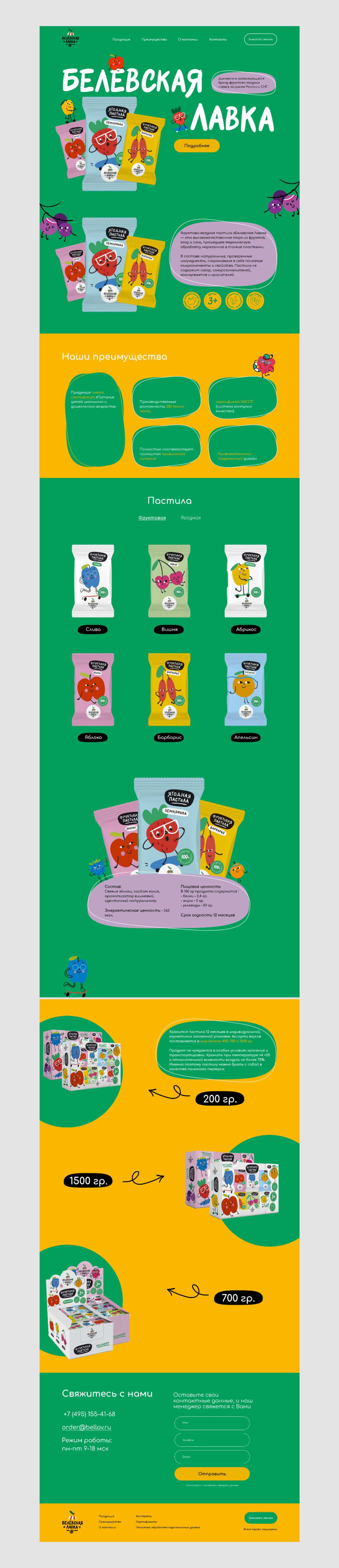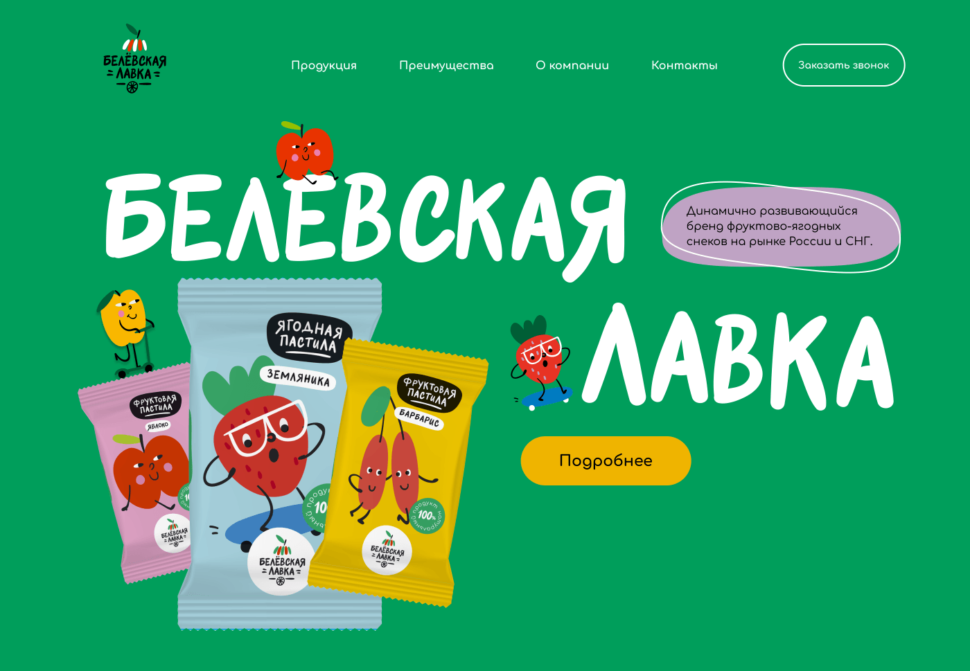 Создание уникального и привлекательного веб-сайта для «Белевская Лавка» – компании, специализирующейся на производстве высококачественной фруктово-ягодной пастилы. Главная цель – выделить бренд на рынке, привлечь новых оптовых партнеров и подчеркнуть уникальность продукции.