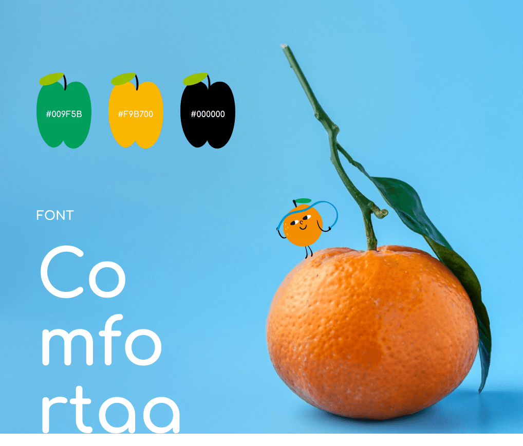 Разработали стильный и энергичный дизайн, который отражает свежесть и натуральность продукции. Яркая цветовая палитра и анимация фруктов создают игривую атмосферу.