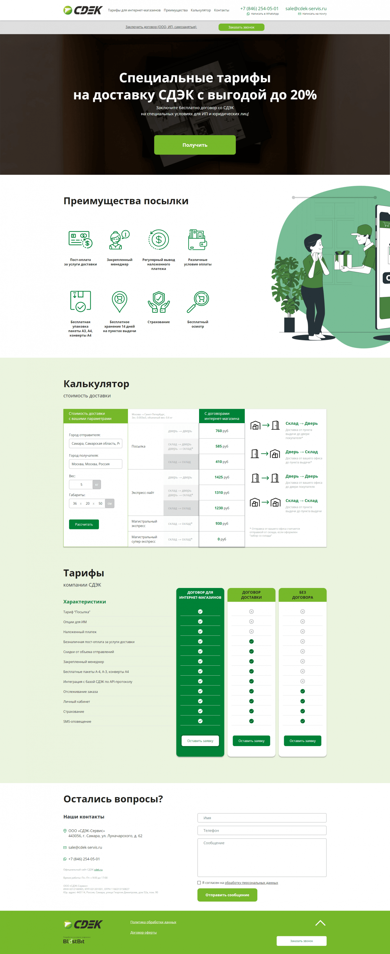Разработать промо-сайт для франчайзи компании СДЭК с уникальным адаптивным дизайном и подсчетом стоимости отправки посылки.