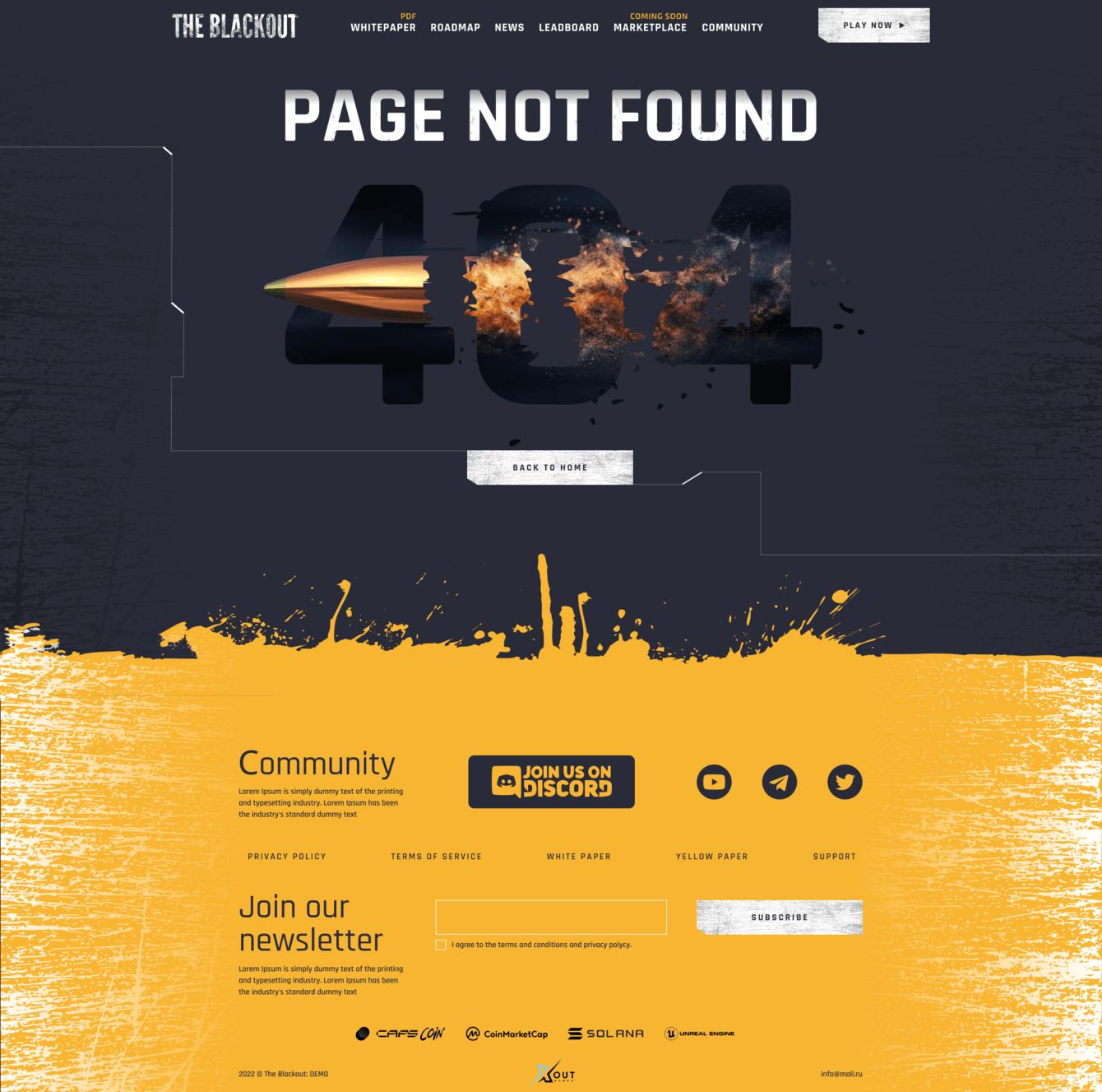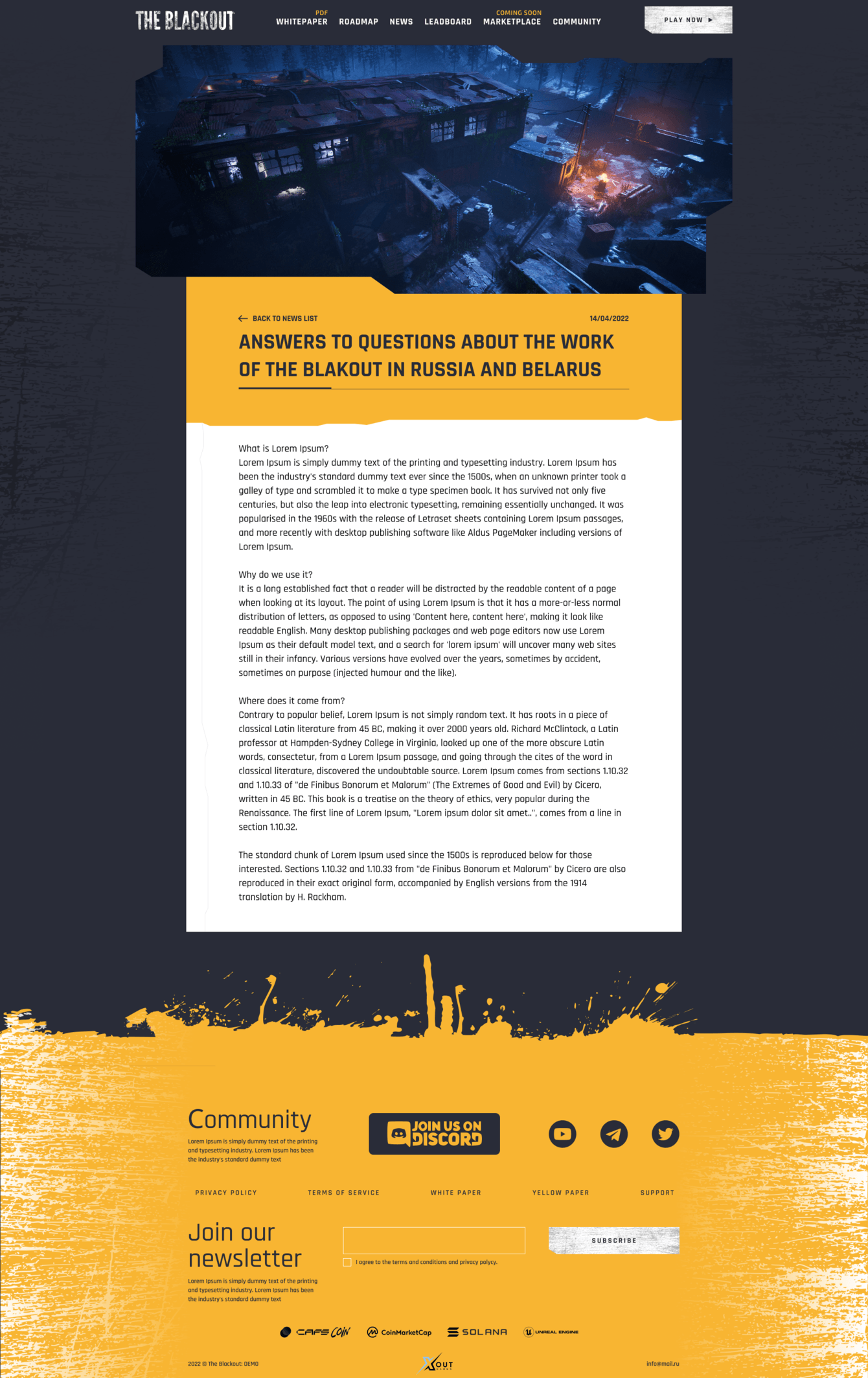 Компания X-Out.Studio поручила разработать официальный сайт для своего нового GameFi-проекта "The Blackout" — мультиплеерного PvPvE-шутера с интеграцией блокчейн-технологий на базе Solana.