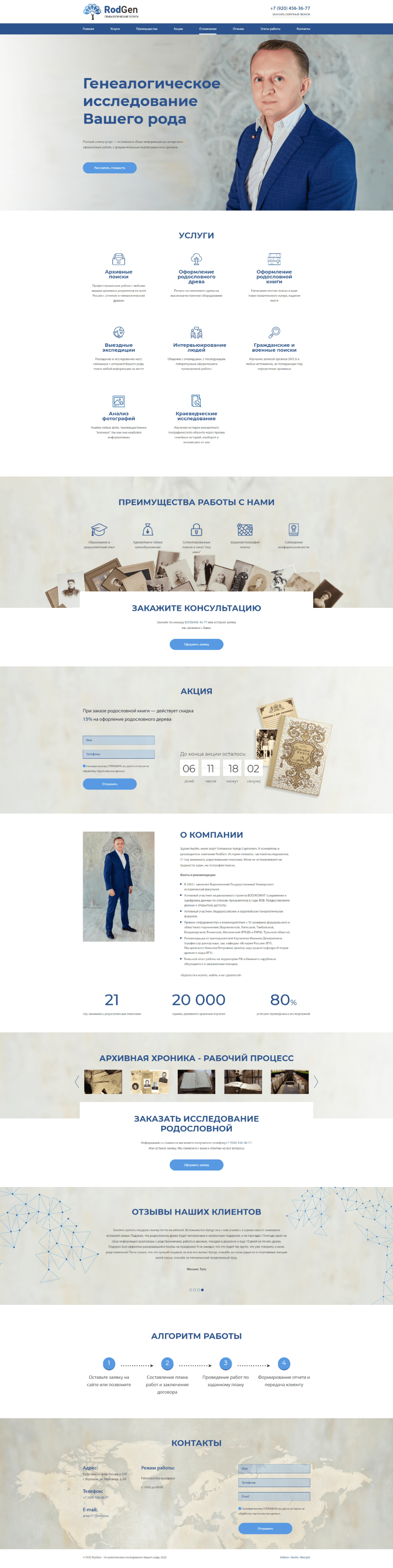 Клиент: компания RodGen, занимается родословными поисками.