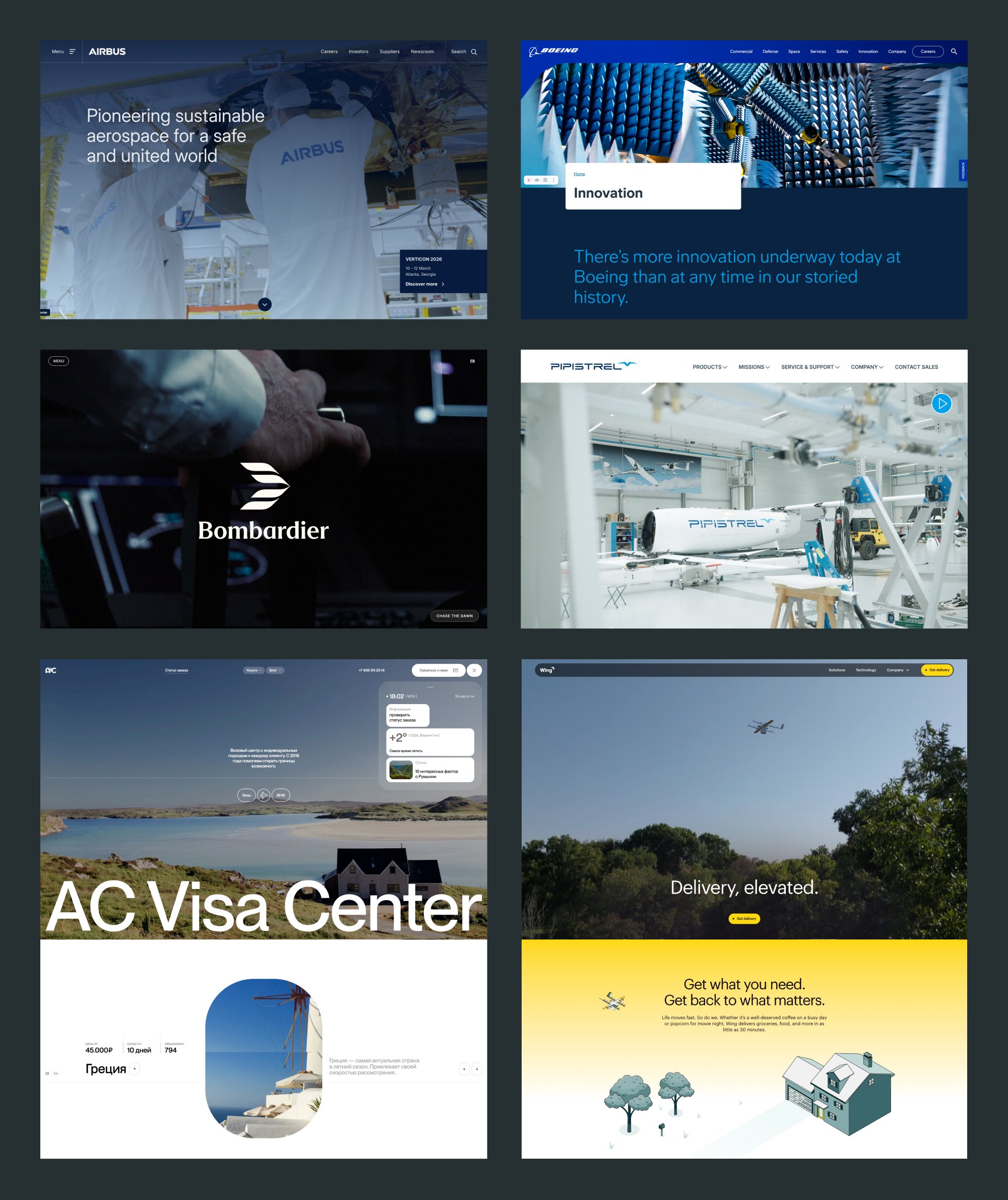 Среди подобранных референсов были не только сайты из авиа сферы, но и далеких от этой ниши, например, сайт визового центра.