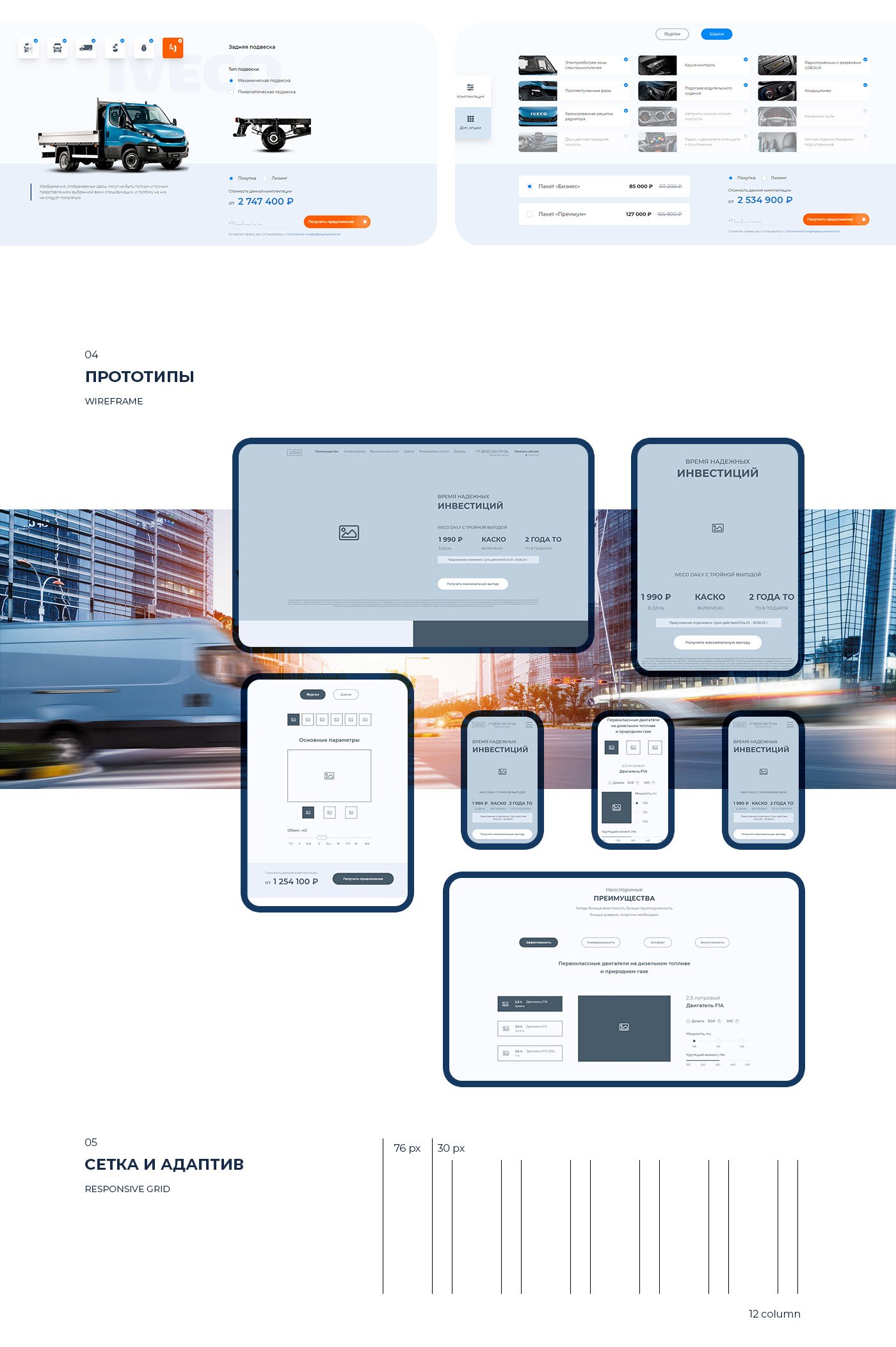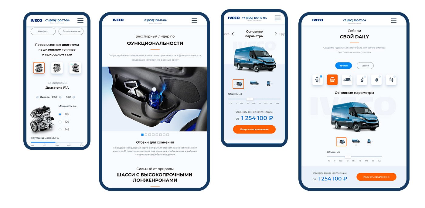Создан современный и аккуратный дизайн с яркими акцентами, отражающий высокий статус и качество продукции компании “Iveco”.