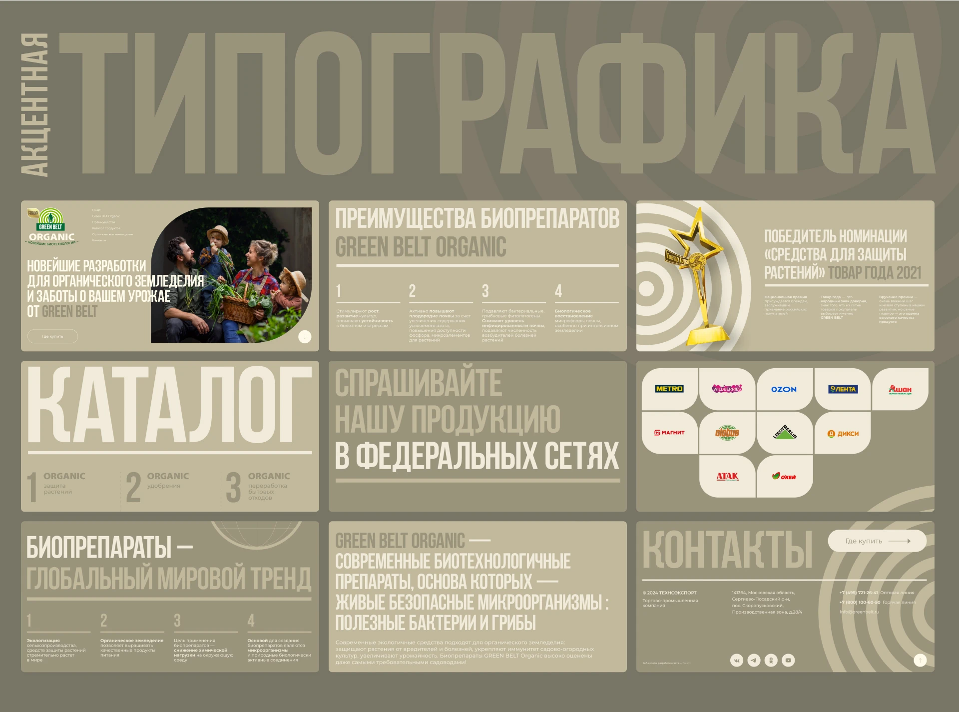 Разработать стильный и лаконичный сайт для премиальной линейки биопрепаратов Green Belt ORGANIC, подчеркивающий натуральность и экологичность продукции.
