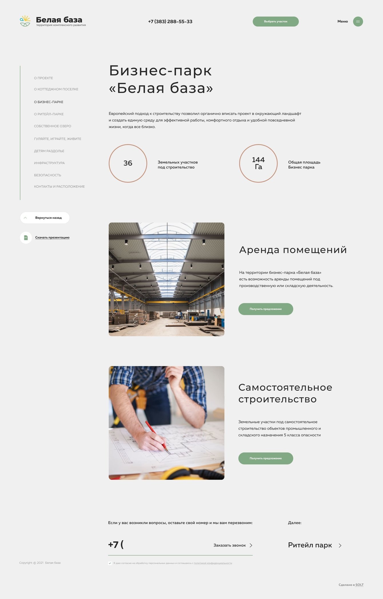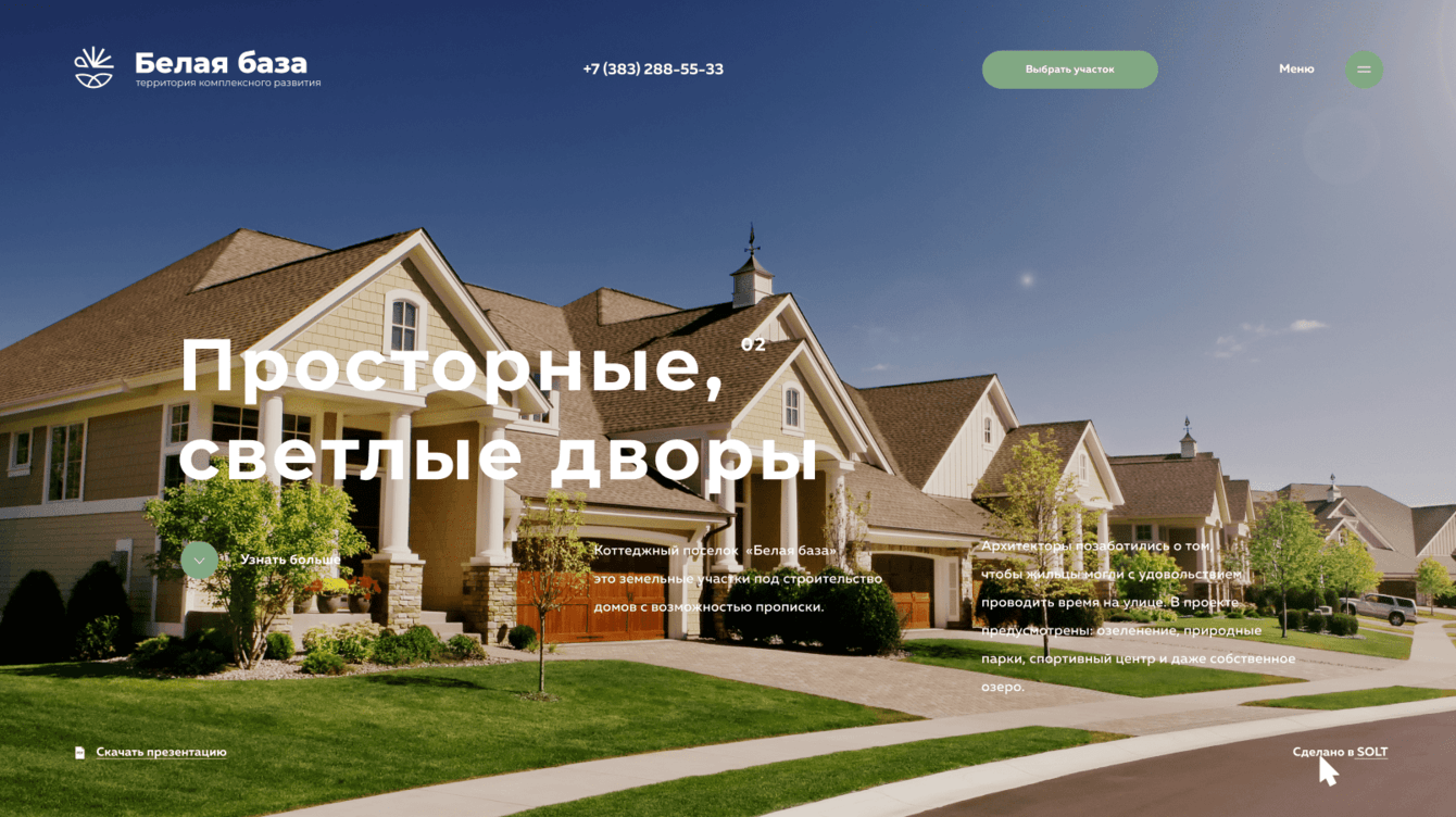 По заказу застройщика «ПромГражданСтрой» для территории комплексного развития «Белая база» мы разработали имиджевый промо-сайт для продвижения продукта.