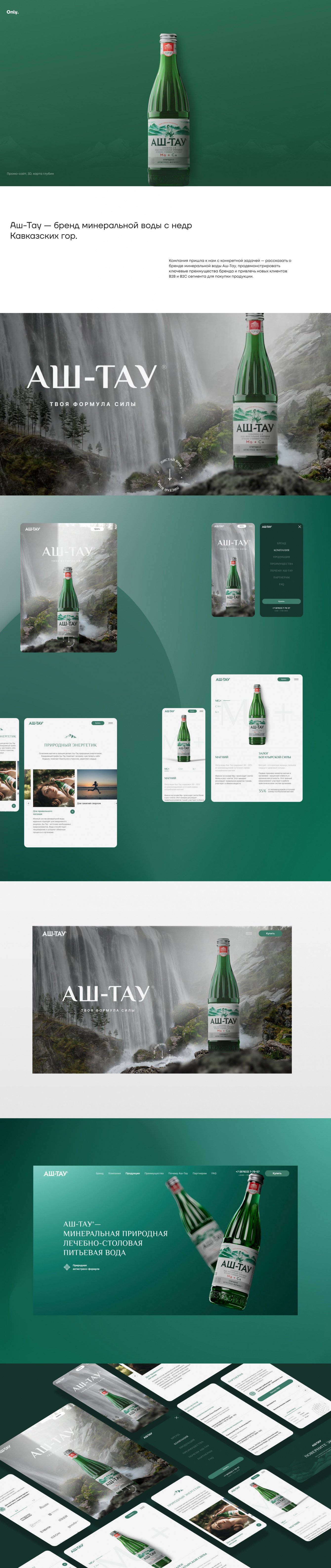 Концепция промо-сайта основана на вовлекающем сторителлинге, подкрепленном реалистичными 3D рендерами. Аш-Тау — бренд кавказской минеральной воды, региона с первозданной природой и чистейшей горной водой. Дух и традиции Кавказа, как ключевые ценности, стали отправной точкой в создании дизайна.