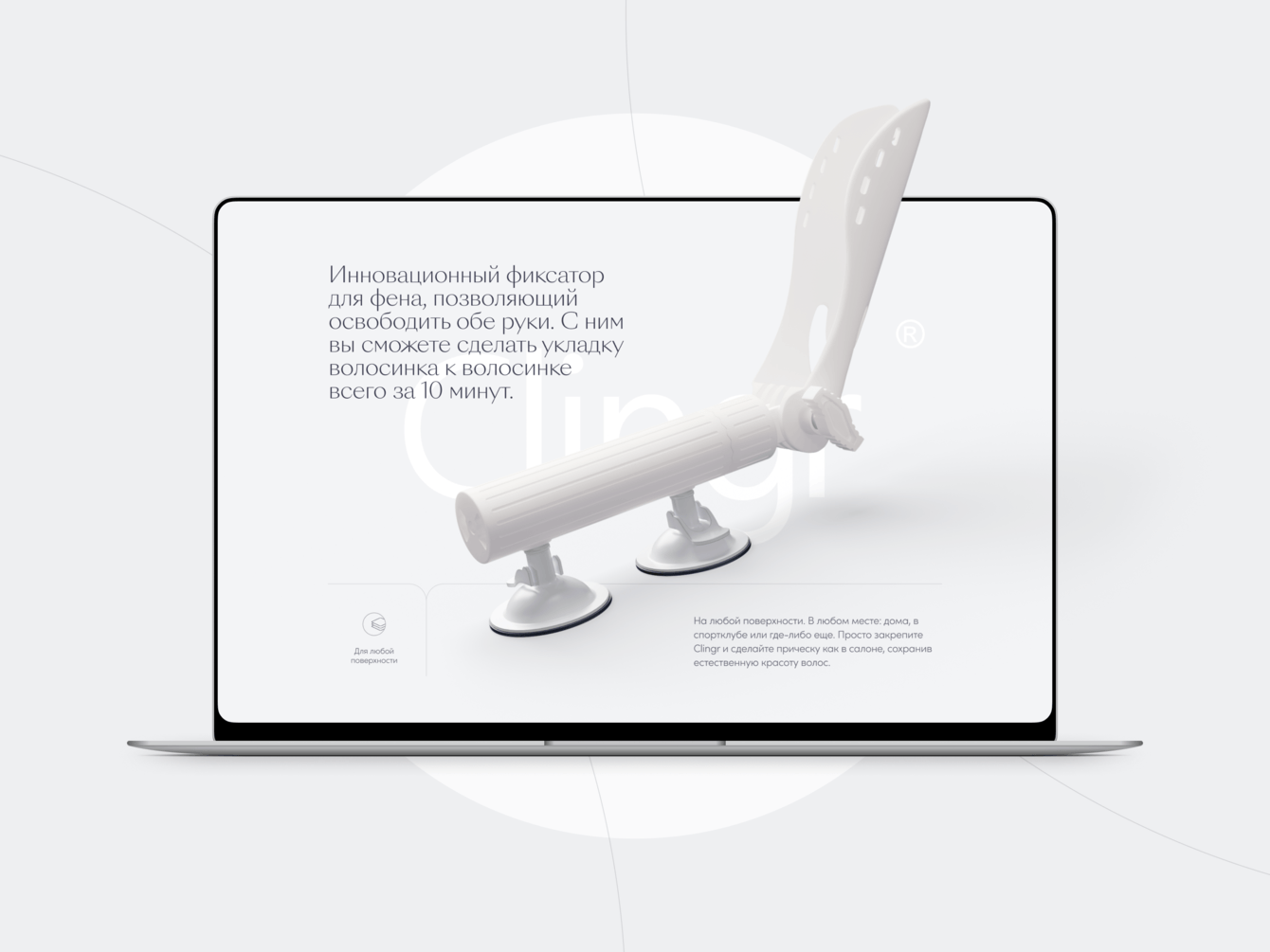Анимировали 3D-модель. Пользователь видит Clingr со всех сторон и понимает, что этот лаконичный бьюти-гаджет раскрывается с элегантной простотой, буквально одним движением.