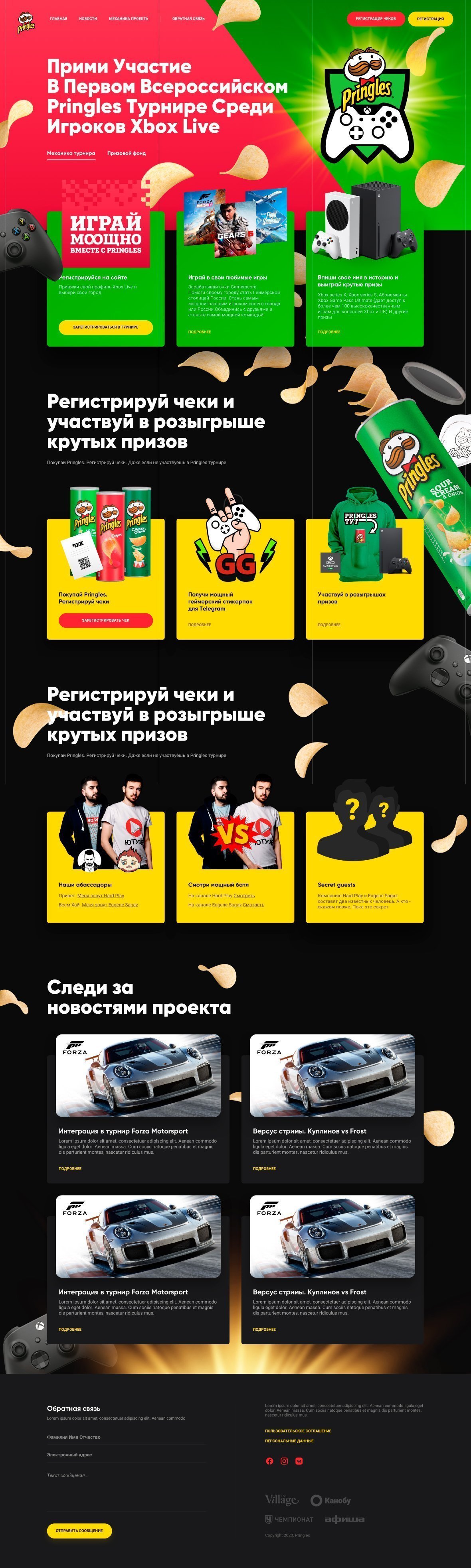 Компания Pringles обратилась к нам по разработке промо-сайта. Суть проекта заключалась – отправь чек в котором есть чипсы Pringles и участвуй в розыгрыше приставок X-BOX.