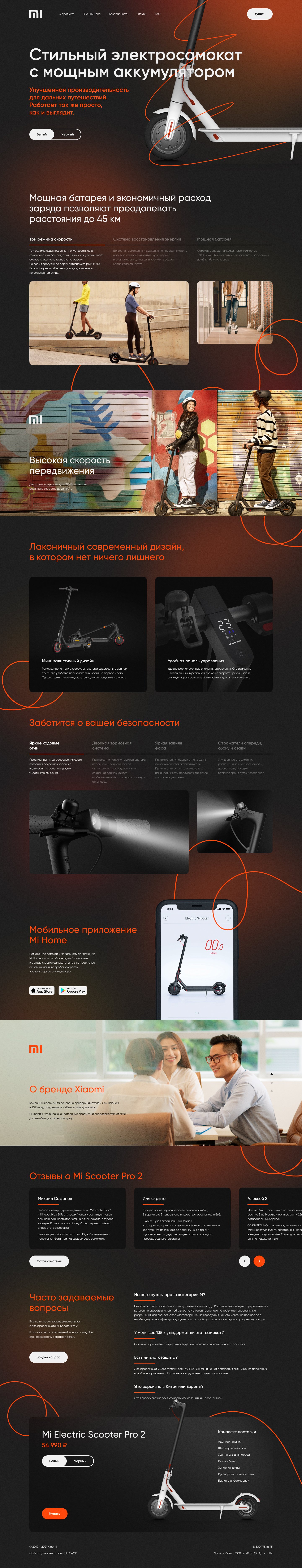Интернет магазин начал поставки новой модели электросамоката, и для проведения рекламной кампании потребовалось разработать дизайн лендинга, посвященного новому продукту.