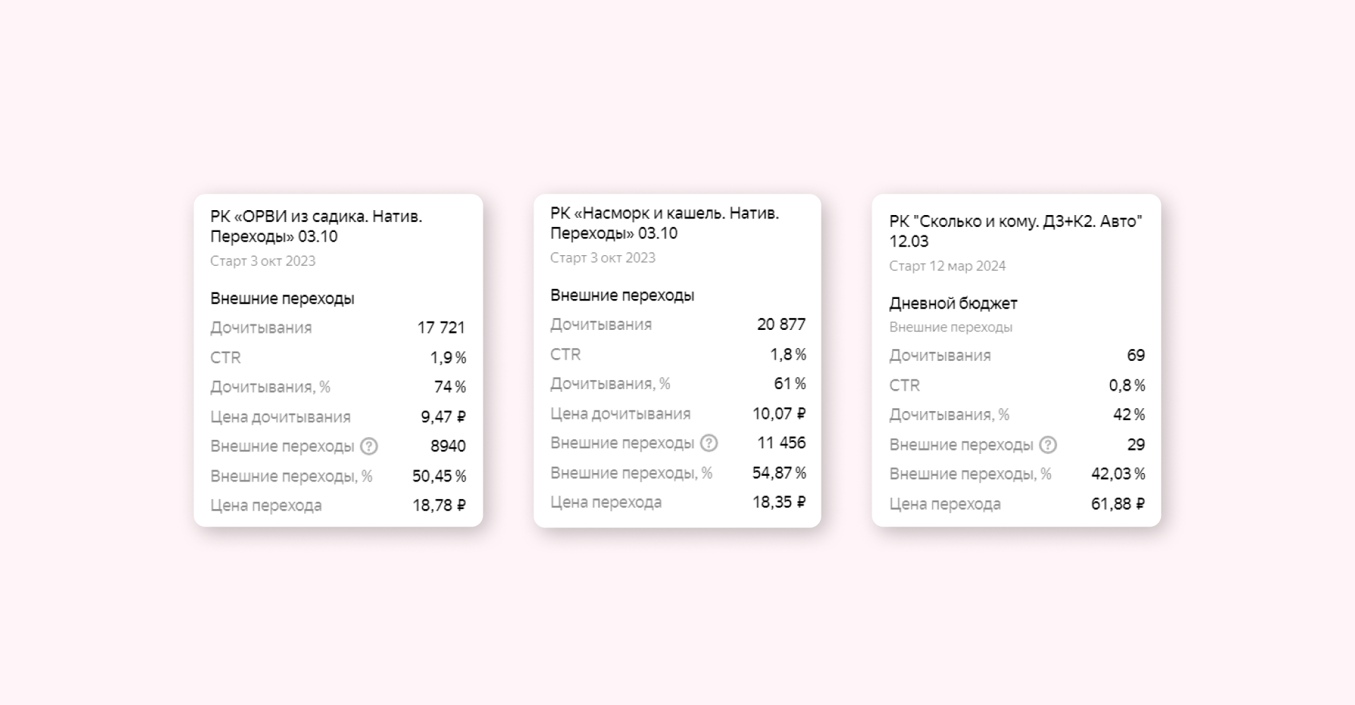 При этом успех кампании невозможен без постоянного поиска новых креативов. Мы регулярно обновляем «парк статей»: некоторые становятся популярными, другие не находят отклика. Главное — не просто писать, а проводить аналитику, чтобы учитывать успешные форматы при создании новых материалов.