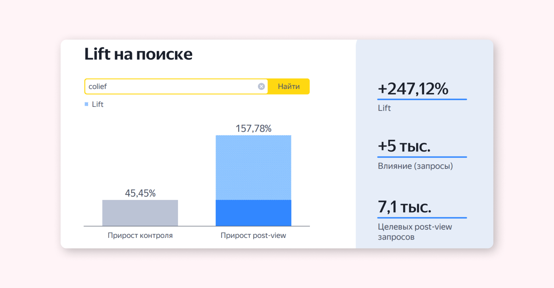 Часть пользователей сразу переходила на маркетплейсы, а другая возвращалась через последующие касания, как в офлайне, так и в онлайне. Отслеживать ассоциированные конверсии в физических аптеках сложно, но в онлайне это оказалось проще благодаря отчёту «Lift на поиске».