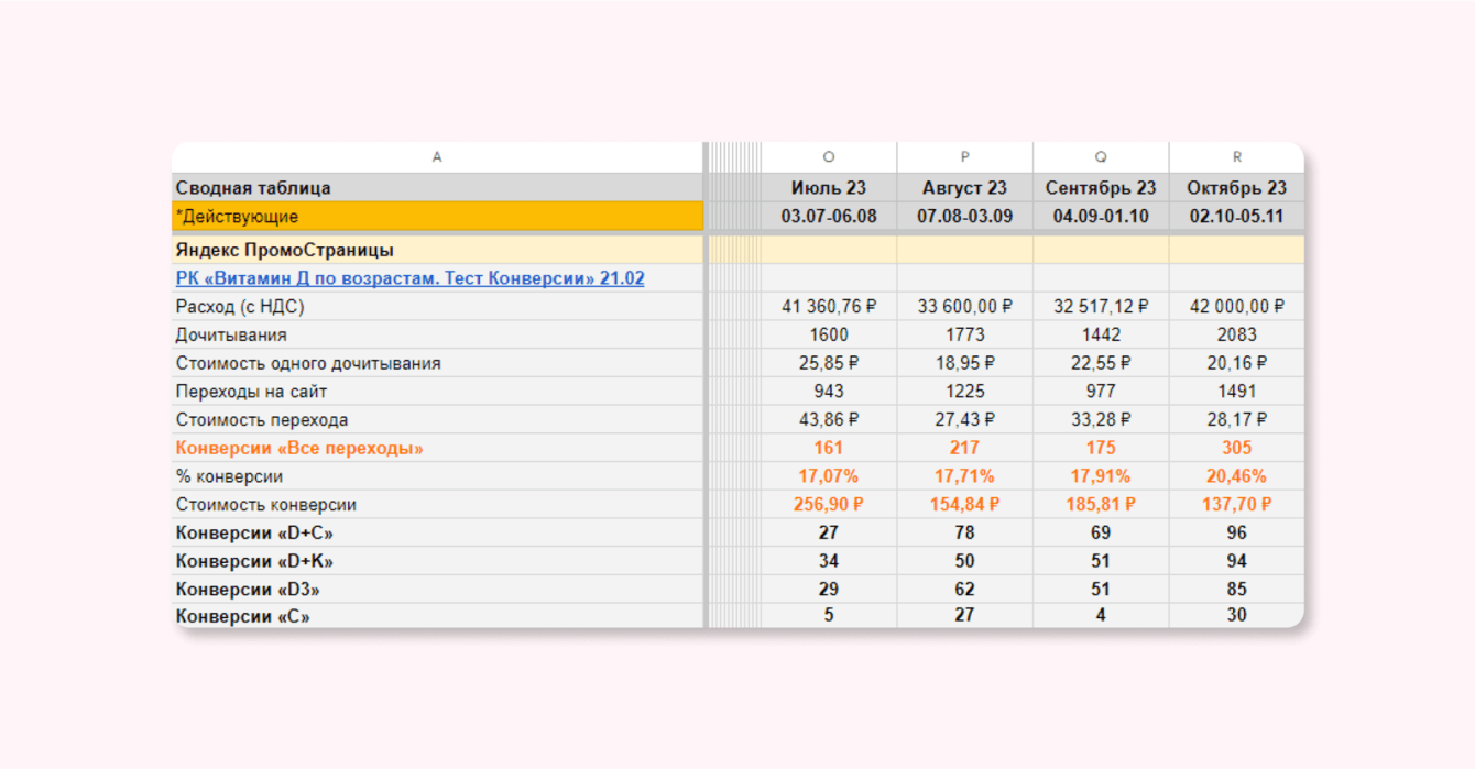 Сравнивать CPL, CPO или ROMI у ПромоСтраниц с Директом некорректно: Директ привлекает аудиторию с прямым спросом, а ПромоСтраницы формируют этот спрос. Поэтому количество касаний до конверсии будет разным. ПромоСтраницы также подогревают интерес пользователей, которые могут вернуться через другие каналы и совершить ассоциированную конверсию, разгоняя весь digital-маркетинг.