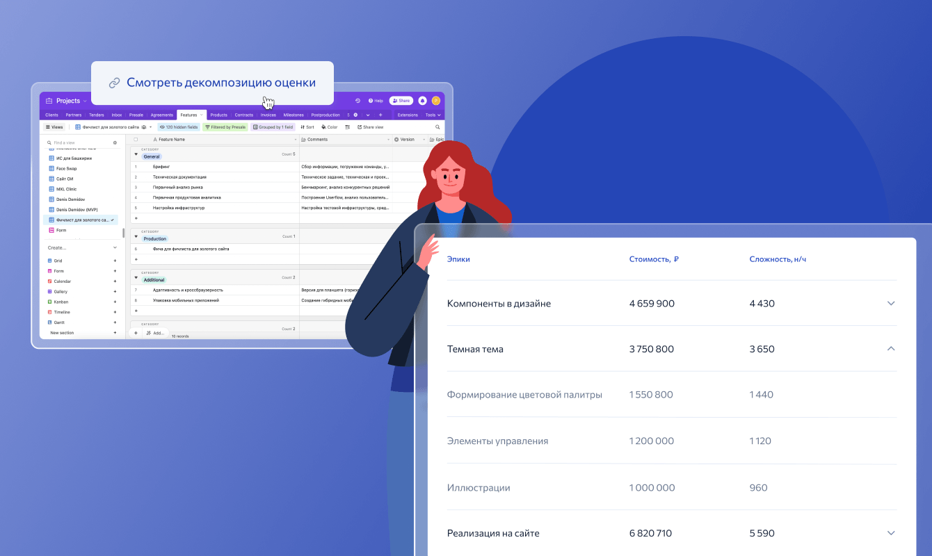 С подобными данными сложно работать: постоянно вылетающие формулы, большой процент ошибок из-за человеческого фактора, невозможность связать фичи с проектом, проекты — с клиентом, а стоимость — с базой ставок.