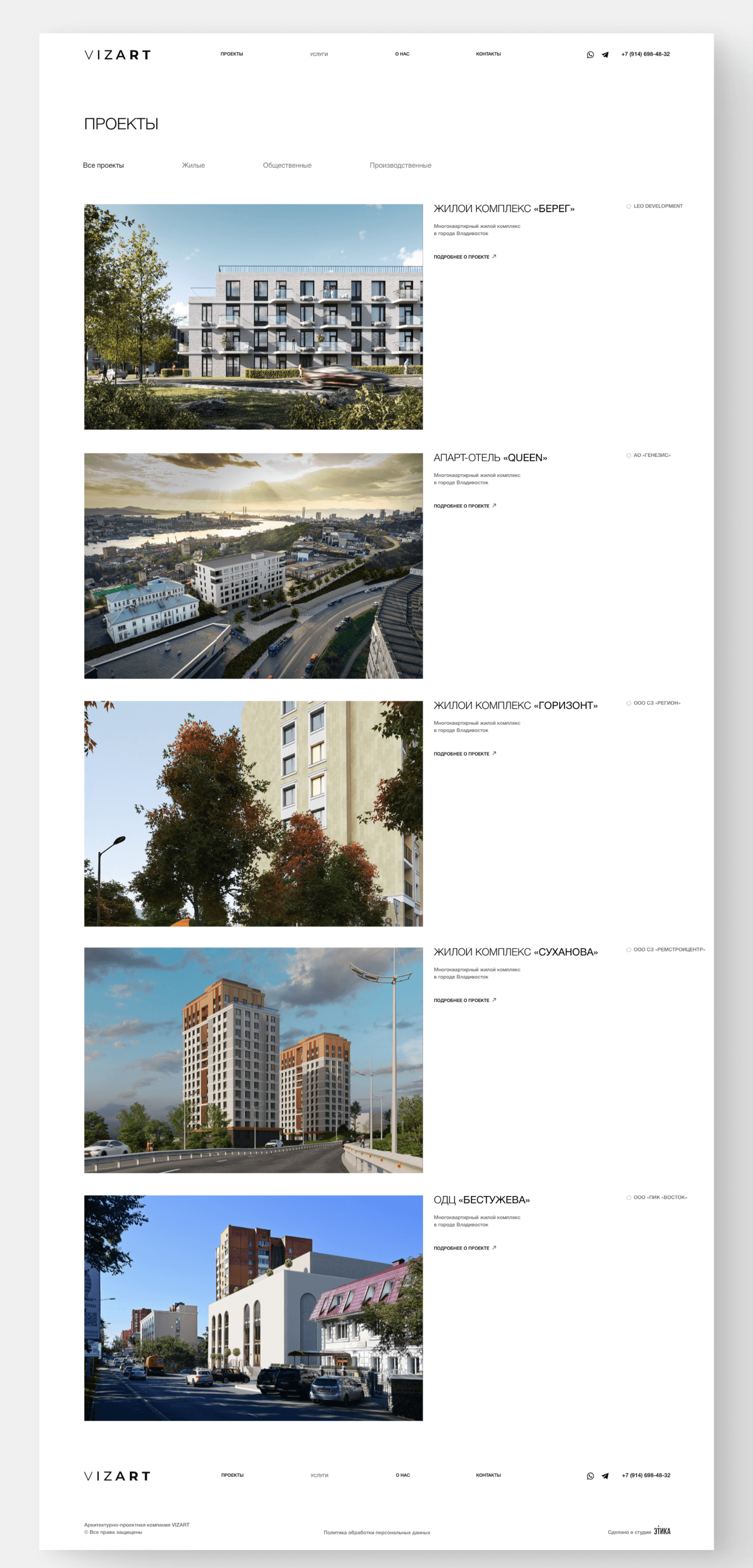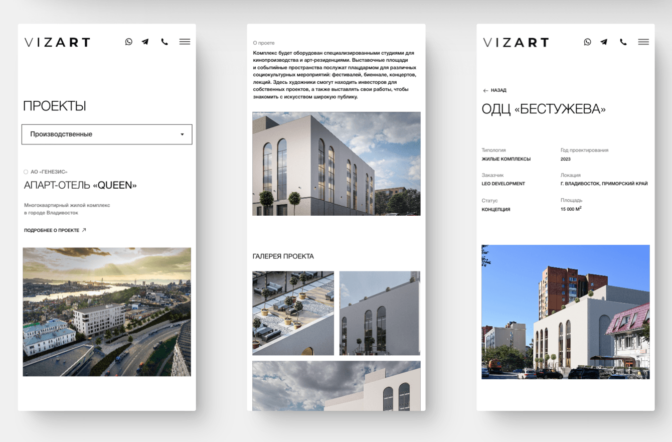 Проект Vizart — это сайт на стыке строгих требований от архитекторов и поиска уникального стиля. Несмотря на стандартные для архитекторов запросы к структуре, нам удалось реализовать несколько своих нестандартных идей. Сайт выполнен в минималистичном черно-белом дизайне, с лаконичной навигацией и оригинальной анимацией загрузки.