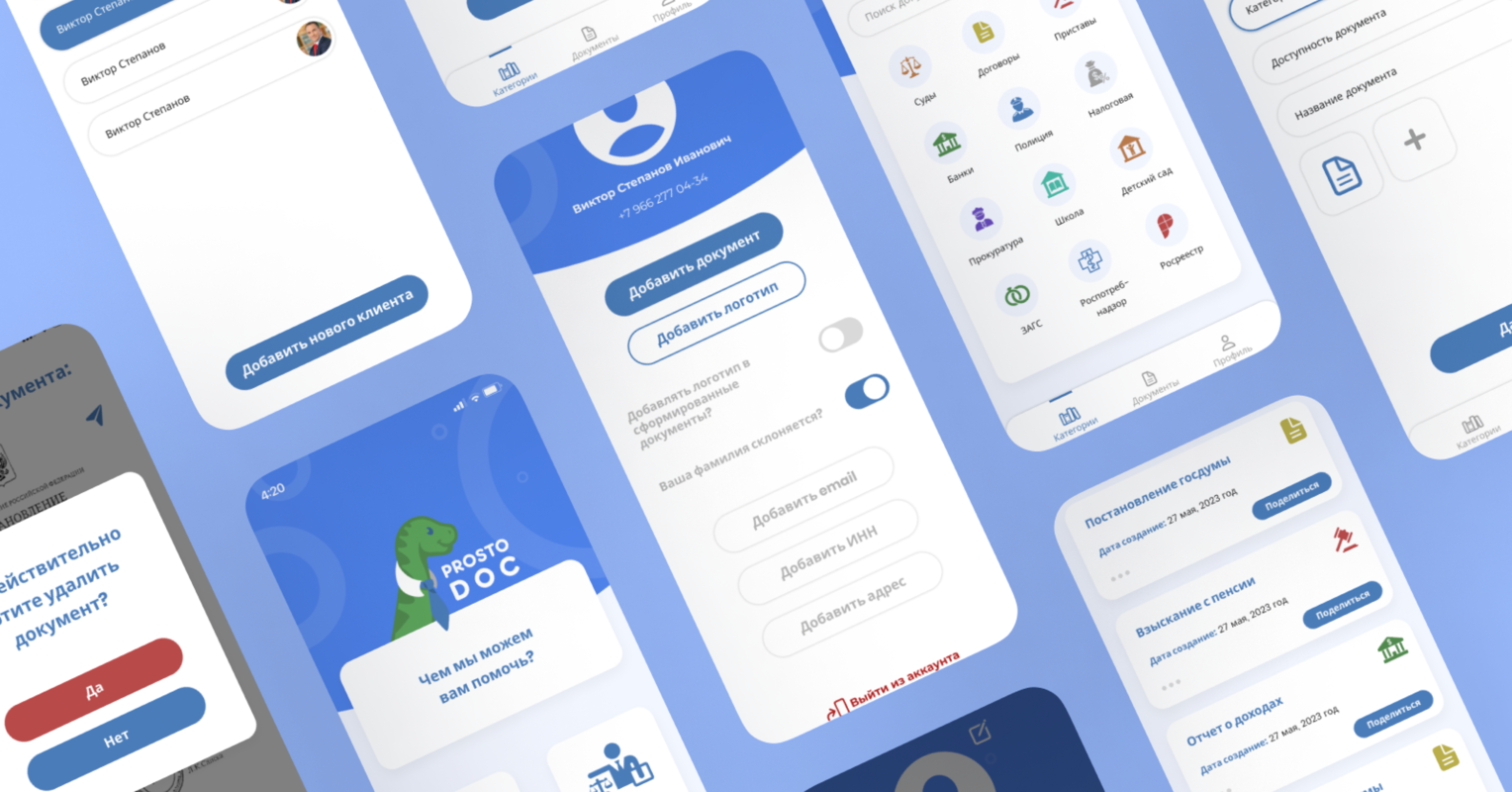 Проект реализован под ключ — от проектирования пользовательских сценариев и логики формирования документов до разработки, тестирования и запуска мобильного приложения.