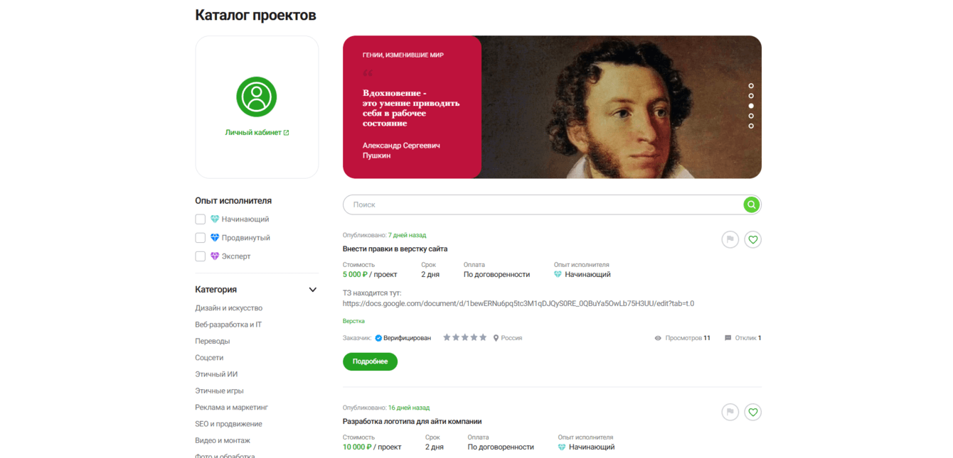 - Безопасные сделки: средства удерживаются на платформе до подтверждения выполнения работ;
