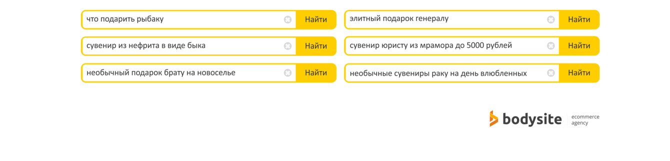 2. Присвоили товарам новые свойства. Например, ваза из оникса может быть «подарком на 14 февраля», «подарком до 2000 рублей», «подарком маме», «сувениром от подруги» и так далее.