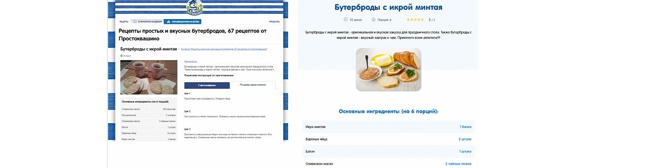 На старом сайте был раздел с рецептами, который приводил около 30 000 посетителей в месяц по небрендовым запросам. Изначально мы планировали перенести весь контент.