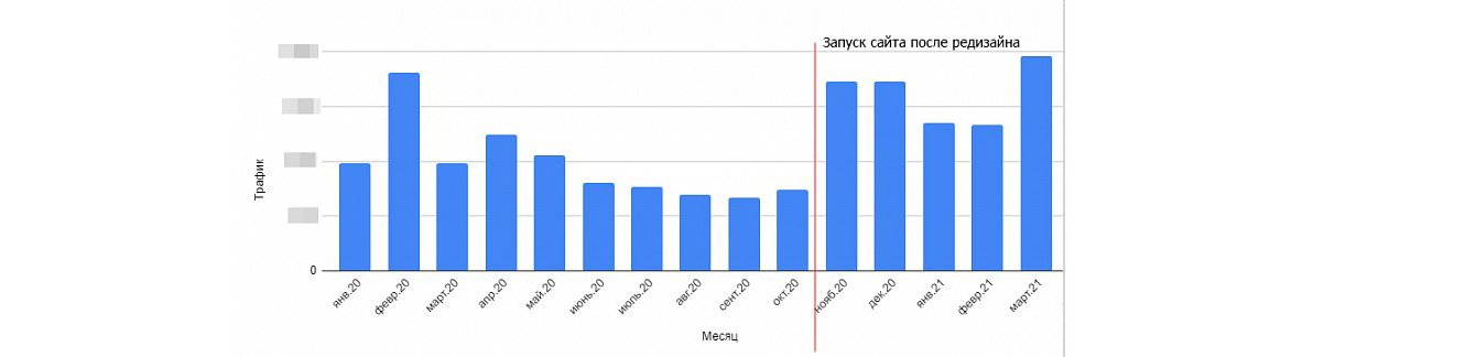 Мы сохранили трафик, который был на старом сайте, потому что вовремя обратили внимание команды клиента на то, что можем потерять почти всех посетителей, если удалим раздел с рецептами.