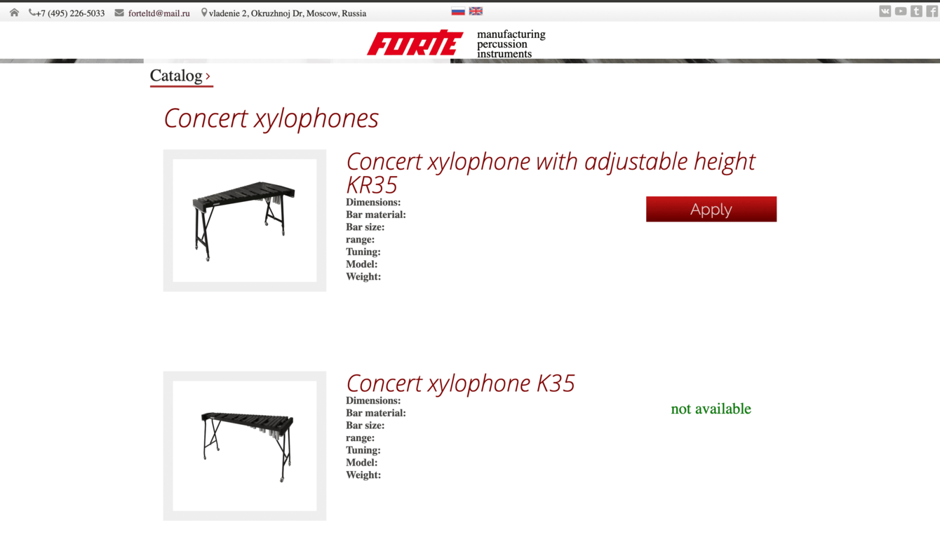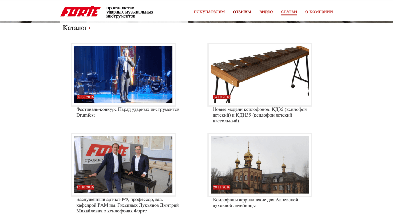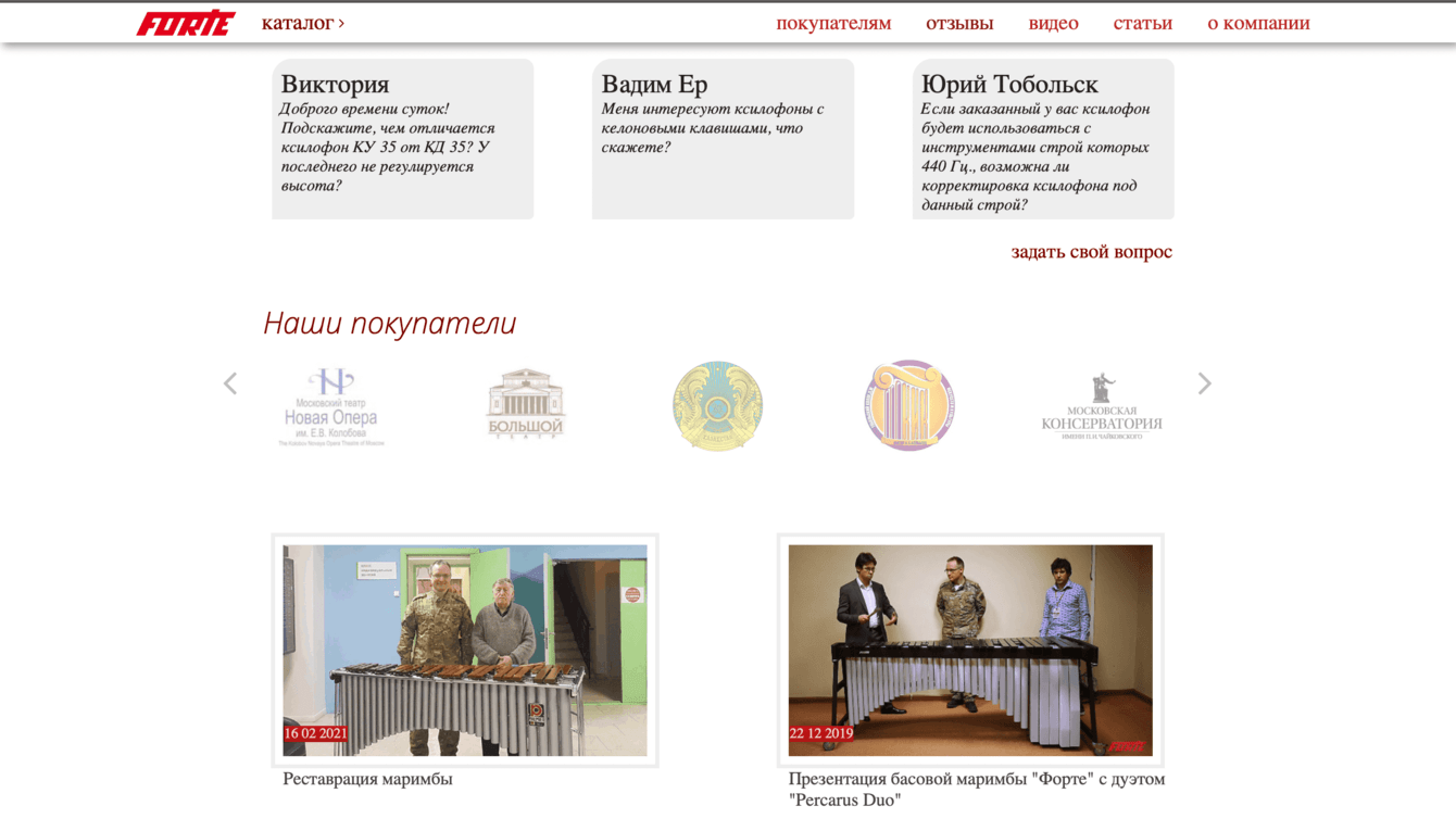 Мы провели небольшое исследование рынка и выяснили, что функционал и актуальность сайта Forte намного лучше, чем у большинства аналогичных брендов, которые реализуют сложные и дорогие музыкальные инструменты.