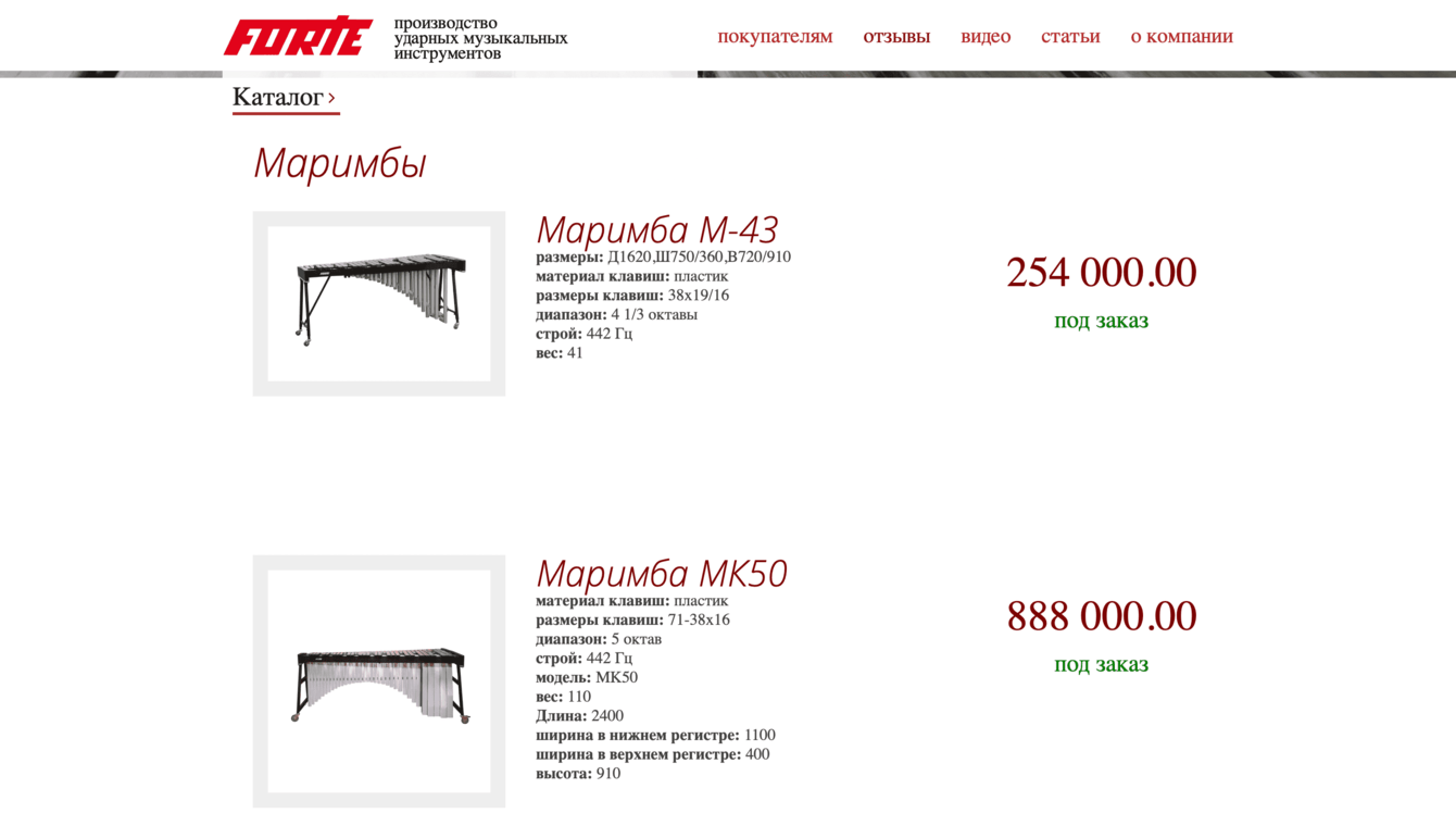 Наш заказчик – производитель ударных музыкальных инструментов Forte. Средний чек в магазине составляет 250 000 - 300 000 рублей. Forte – один из немногих производителей, который реализует на рынок ксилофоны.
