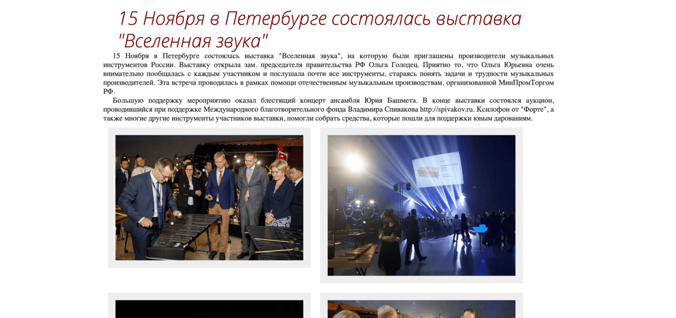Для этого мы собрали все возможные фотографии, отчеты, отзывы, новости и статьи о сотрудничестве бренда Forte с разными сегментами аудитории: от музыкальных коллективов до государственных культурных учреждений.