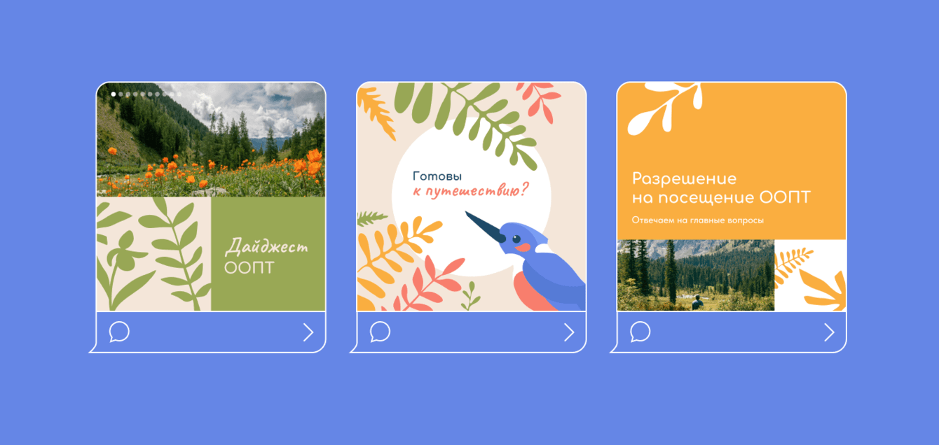 Здесь подписчики могут поделиться впечатлениями о поездках на заповедные территории, обсудить интересные темы и узнать много полезного об экотуризме. А созданный нами чат-бот помогает выбрать подходящие ООПТ для путешествия.