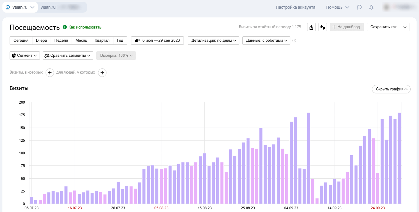 • Увеличение среднего времени на сайте, что свидетельствует о высокой заинтересованности посетителей