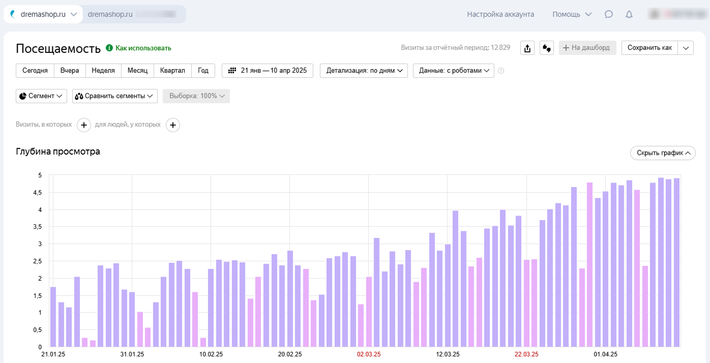 • Глубина просмотра: с 2.8 до 5.4 страниц