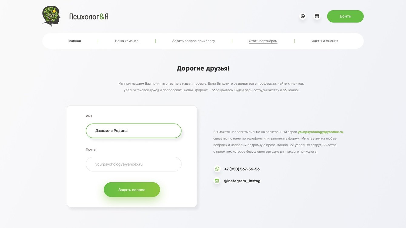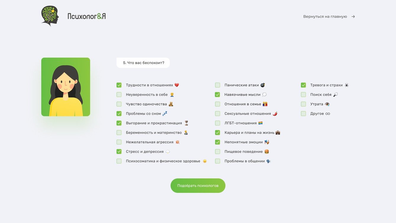 Яркий и интуитивно понятный онлайн-сервис по подбору психологов