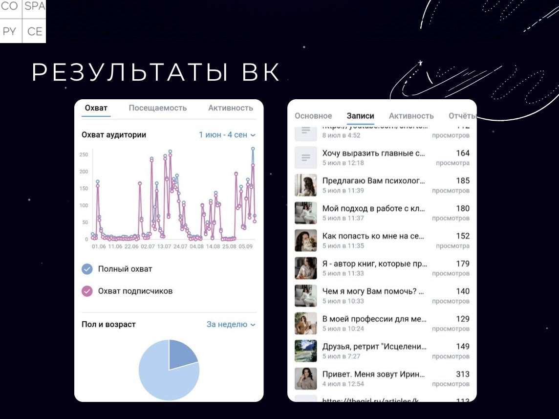 Первым что мы сделали в создании контента - это задали себе вопрос «Чтобы хотели читать и узнавать люди?» . Далее мы создали собственный стиль для Ирины и ее аккаунта , который начал нравится и привлекать подписчиков . Подготовили с нуля контент план , которого придерживались и дали аккаунту новую жизнь .