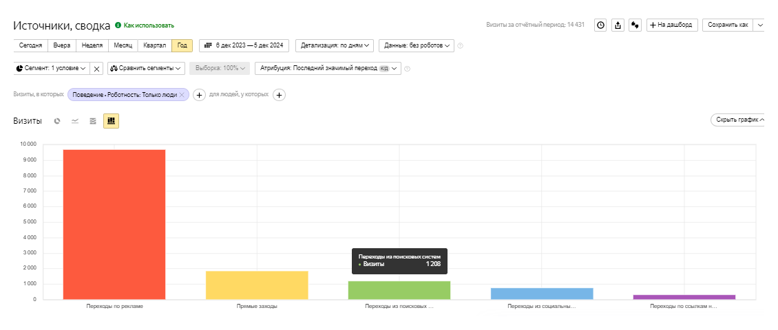 Получено около 778 визитов в категории до 25 лет включительно. Однако зафиксировать в точности этот параметр без погрешностей сложно, так как молодые люди могут выходить в интернет с домашних устройств, которые имеют поведенческий след и идентификацию от родительских аккаунтов.