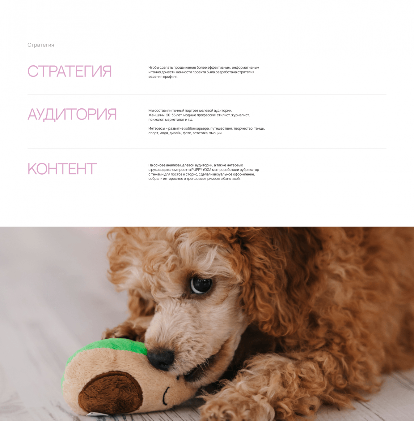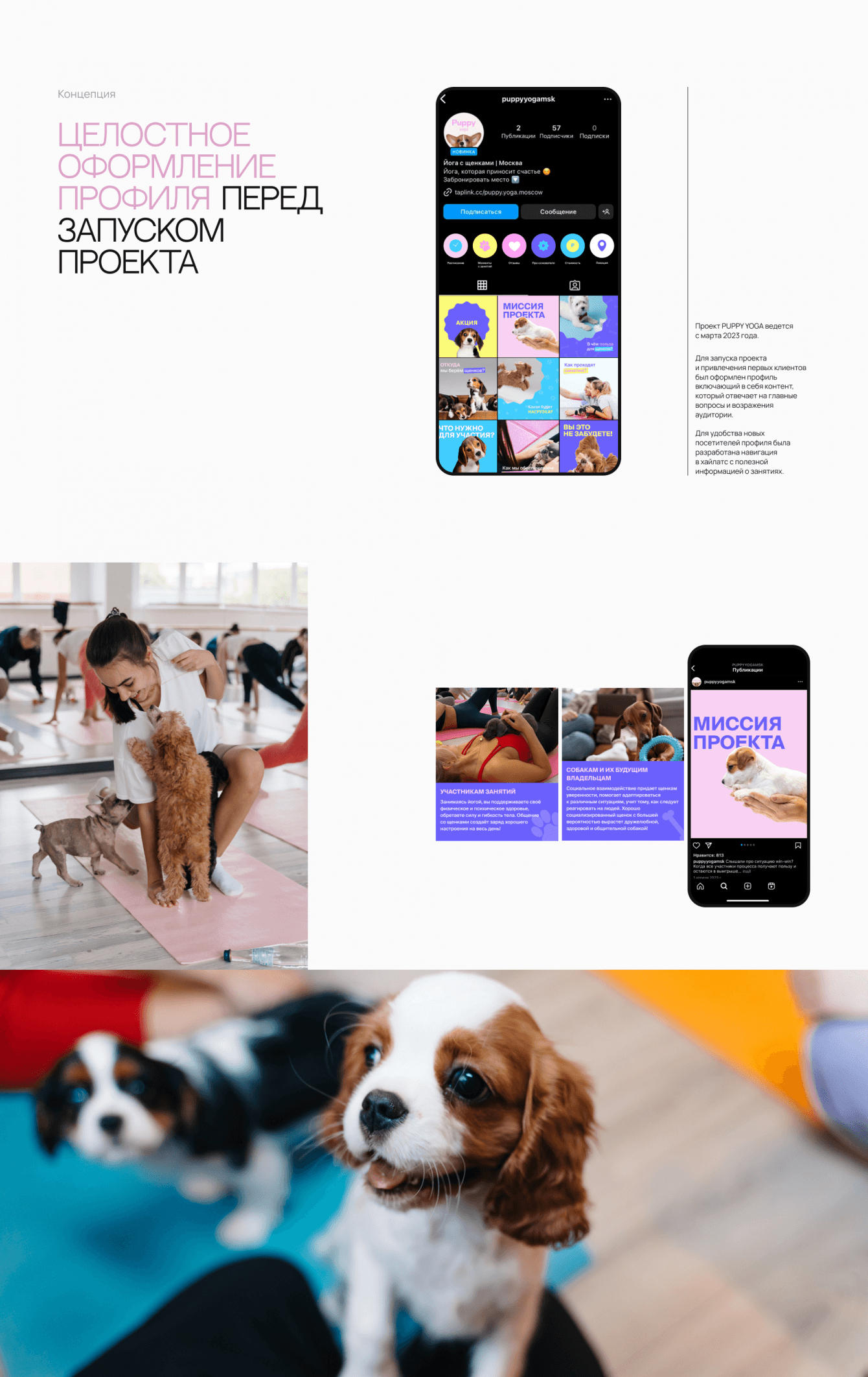 PUPPY YOGA — первый проект в России, который сочетает выполнение йога-практик в присутствии щенков. Занятия направлены на психическое и физическое здоровье гостей, а также на социализацию собак.