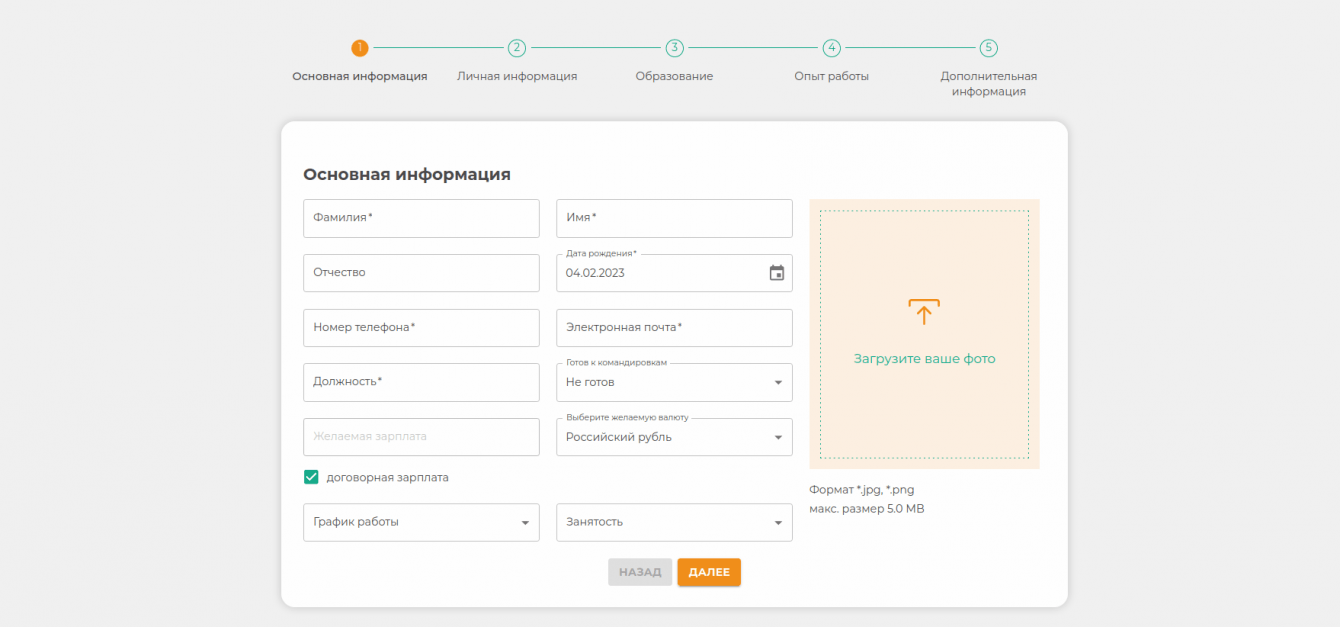Необходимо в кратчайшие сроки реализовать MVP онлайн сервиса создания резюме.