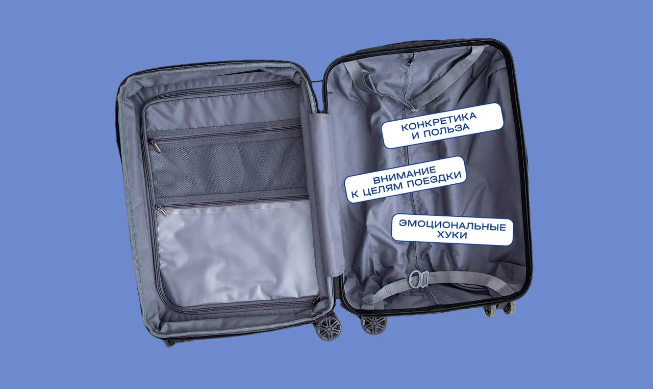 - Использовали эмоциональные хуки — ассоциации, воспоминания, ощущения. Пример: Засвеченные фото в галерее и песок в карманах: билеты Москва-Ялта от 3 600 рублей!