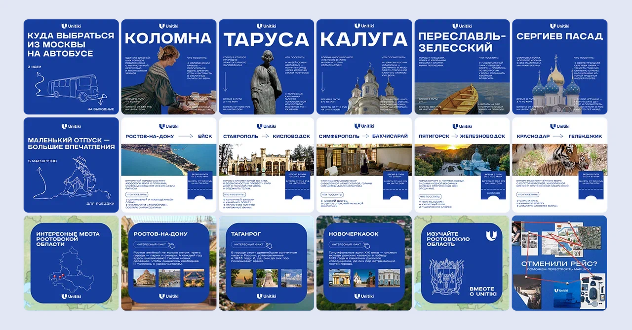 Мы обращались к разной целевой аудитории и использовали вовлекающие механики. Так мы сегментировали подписчиков по их предпочтениям и планировали релевантные подборки маршрутов, билетов и тем постов на будущее.