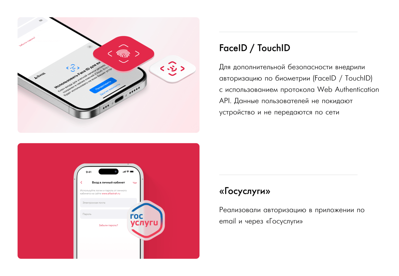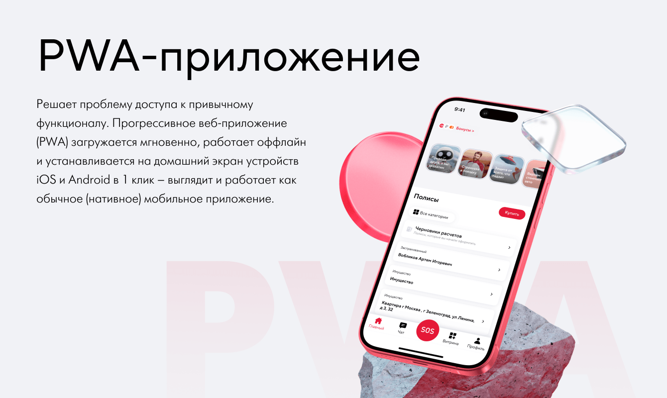 В рамках стратегии цифровой трансформации АльфаСтрахование активно внедряет инновационные решения. В условиях нестабильности и меняющегося рынка мы в кратчайшие сроки вернули нашим клиентам возможность использования функций мобильного приложения – одни из первых в сфере страхования создали удобное PWA-приложение. Проект успешно реализовал digital-интегратор D’Terra. Веб-приложение для пользователей iPhone и Android в формате PWA имеет привычный дизайн и функционал – возможность установки на телефон и планшет, авторизацию по email и через «Госуслуги», получение уведомлений, запись к врачам, оформление страховых случаев и прочие возможности. Обновления становятся доступными пользователям без ручной модерации через магазины приложений. Клиентам АльфаСтрахование всегда доступны онлайн-сервисы. Открытый формат сотрудничества, гибкая методология разработки и глубокое понимание бизнес-целей проекта помогли в рекордно сжатые сроки создать продукт, соответствующий нашим ожиданиям.
