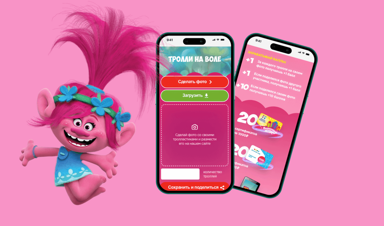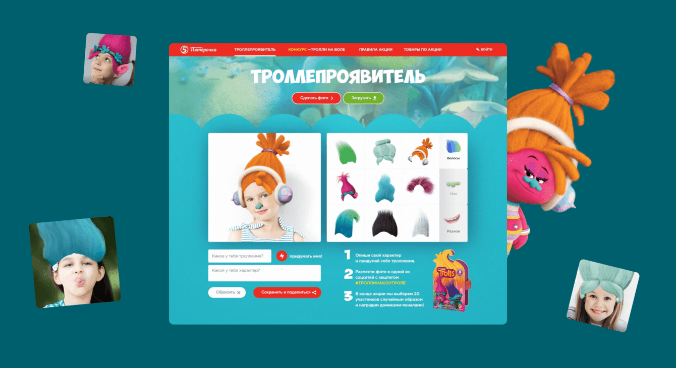 Придумали и интегрировали на сайт интерактив «Создай Тролль-портрет» для генерации фото в фирменном стиле мультфильма