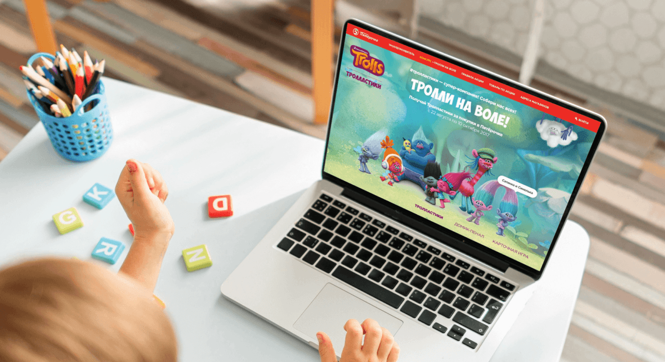 Увеличение трафика в магазины сети за счет создания промо-сайта в поддержку акции, в рамках которой покупатели получают ластики в виде персонажей мультфильма «Тролли» за каждые 555 рублей в чеке.
