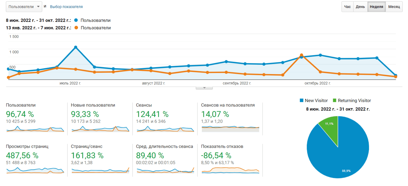 • Прошлая версия сайта переведена на новый домен, затем настроен редирект на обновленный сайт с целью сохранения траффика и удержания индексации.