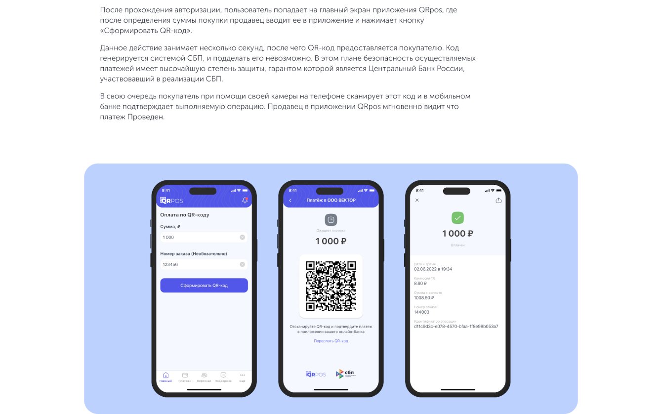 С помощью мобильного приложения QPos можно за 5 минут начать прием платежей от клиентов по Системе быстрых платежей ЦБ РФ. Оно подходит для каждого вида бизнеса: ресторанов, кафе, салонов красоты, магазинов, автомоек и т.д.
