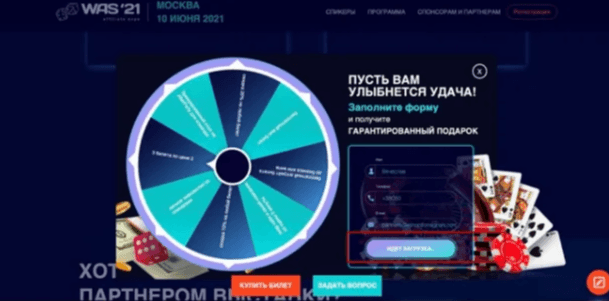 При переходе на сайт участники могли принять участие попытать удачу с помощью «колеса Фортуны». После ввода ФИО и номера телефона потенциальный гость форума мог выиграть скидку 10%, брендированный стол на афтепати, VIP-билет или опцию "3 по цене 2".