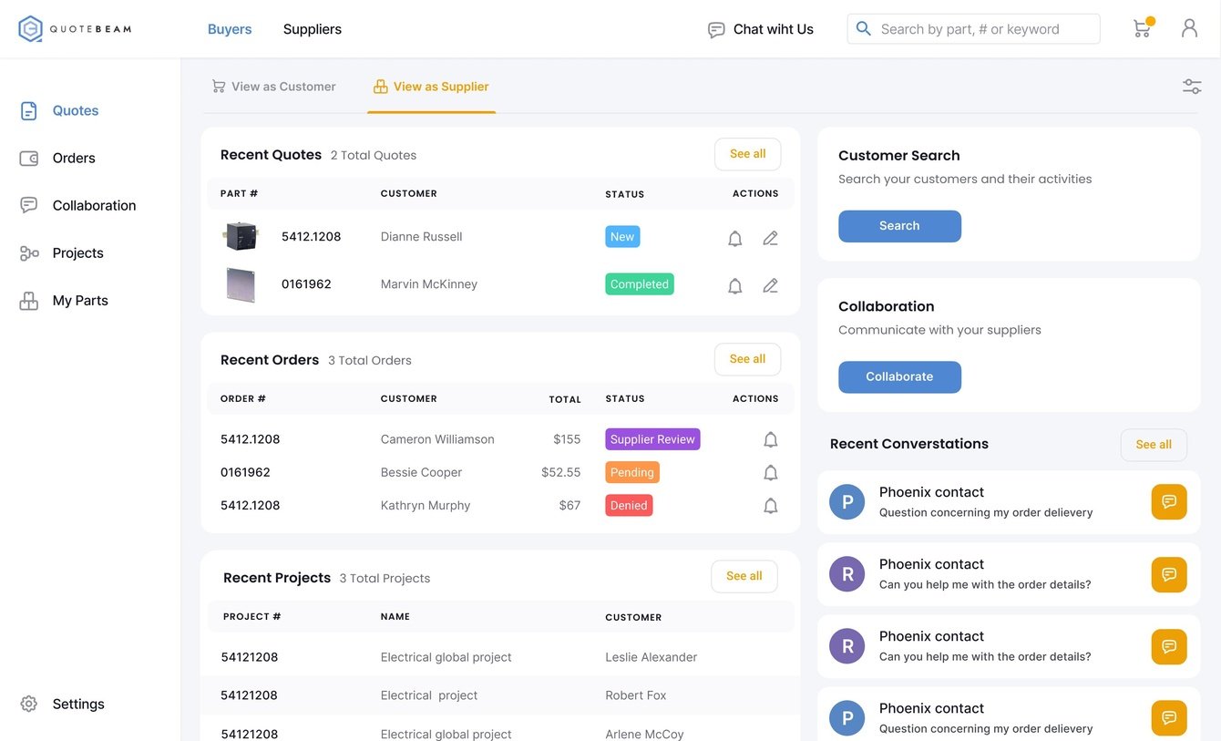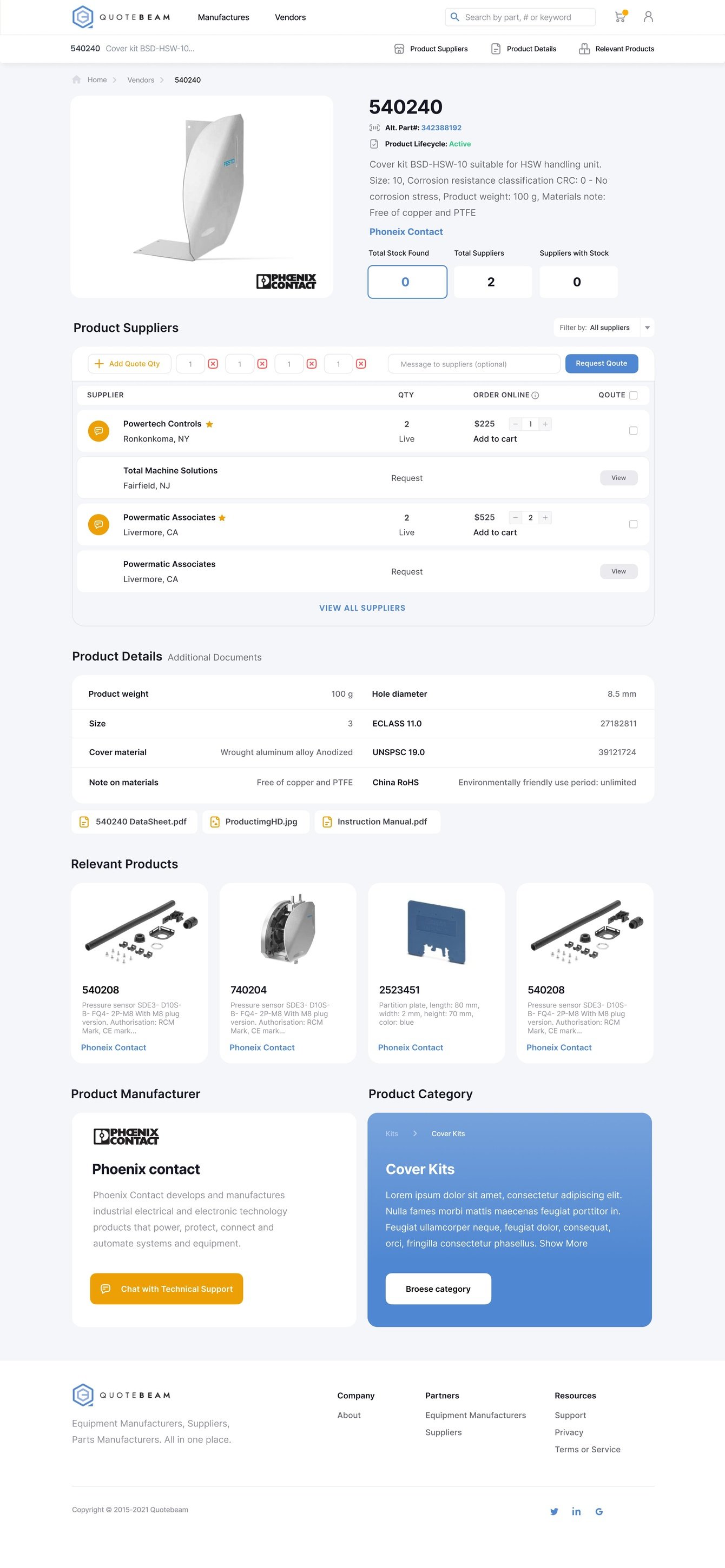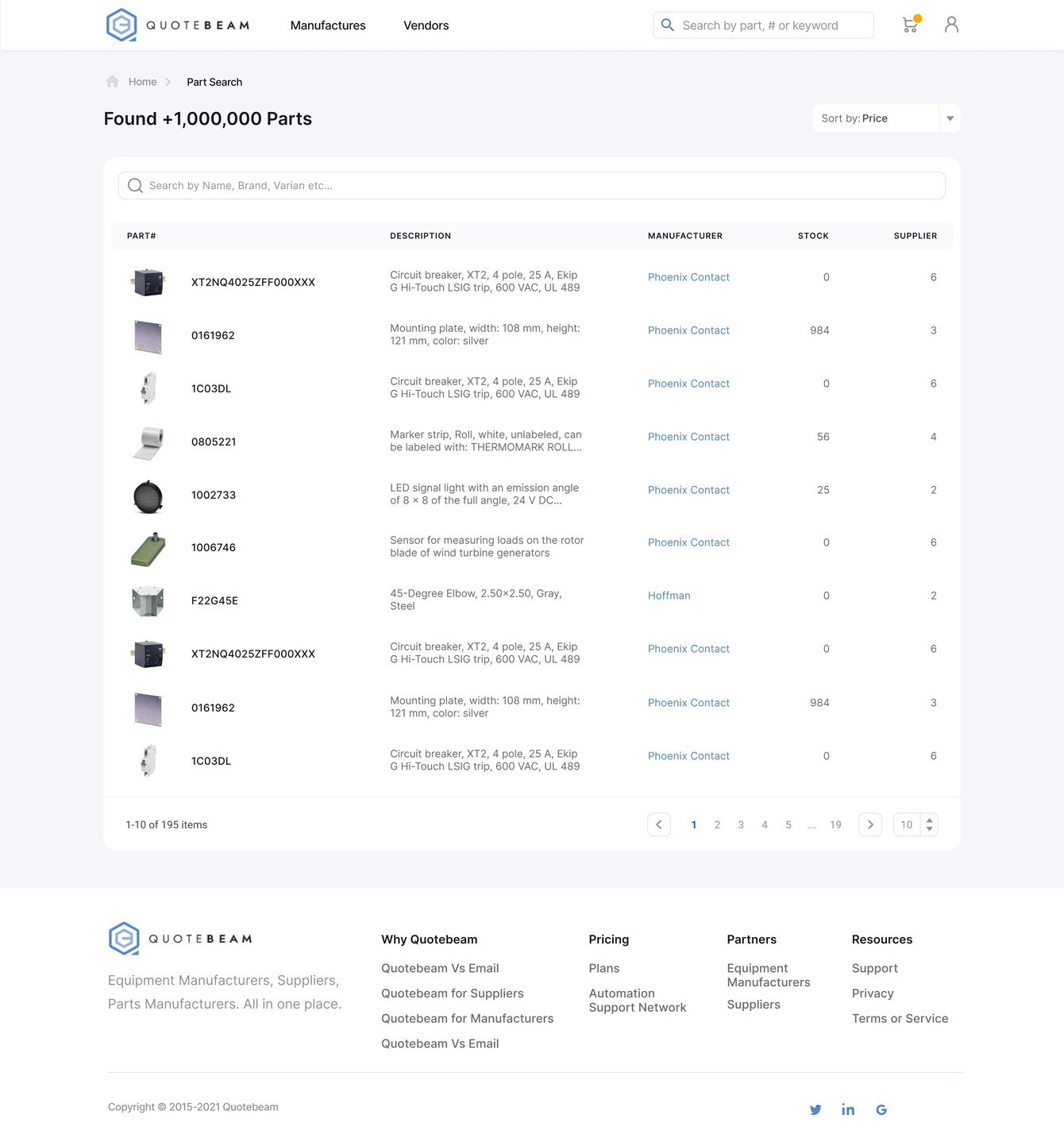 Quotebeam - это маркетплейс, который облегчает процесс продажи решений для промышленной автоматизации. Пользователи площадки - покупатели, поставщики и компаниями -производители. Платформа позволяет делать запросы, обсуждать условия доставки и совершать покупки запчастей автоматизации. Здесь специалисты по технике и закупкам могут найти необходимые детали и сотрудничать с поставщиками и производителями в одном "окне".