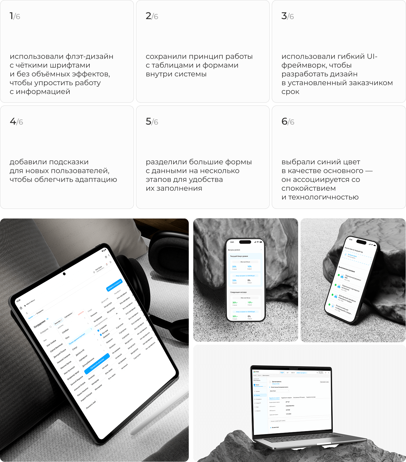 Интерфейс должен быть простым и логически продолжать дизайн предыдущего решения по сбору заявок. Мы развили существующую концепцию и разработали минималистичный стиль личного кабинета с акцентом на удобство пользователя: