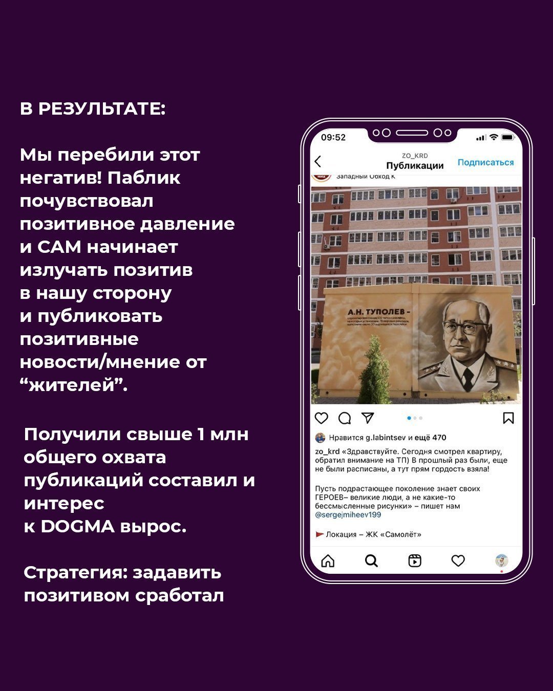 DOGMA - крупная строительная компания, которая дарит комфорт и уют семьям Краснодара и Новороссийска. Dogma входит в ТОП-5 застройщиков по Краснодарскому краю и каждый год подтверждает свое место в рейтинге. На данный момент есть 4 сданных ЖК, и еще 3 объекта находятся на этапе строительства. Один из них - МКР “Самолёт”, самый крупный проект застройщика. Догме доверяют не только местные жители, но и приезжие, находящиеся в поиске жилья на юге. Но с количеством новых обладателей уютных квартир растет и количество негативных комментариев в соцсетях компании. Что с ними делают?