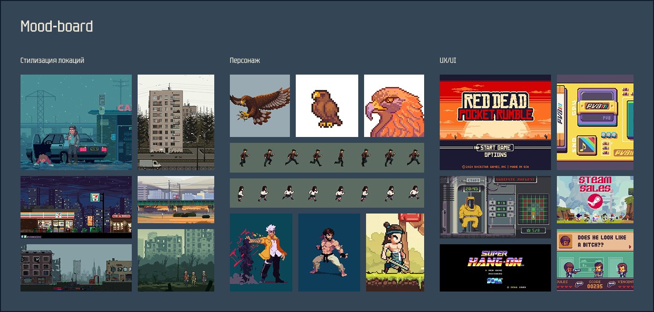 Мы создали игру-раннер с узнаваемыми локациями Омска. Основой визуала был выбран стиль пиксель-арт. Это было осознанное решение, направленное на ностальгию у взрослой части аудитории, вызывающее ассоциации с классическими 8-битными играми их детства. Клиенту был представлен мудборд с референсами.