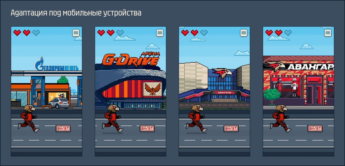 На старте проекта мы погрузились в специфику хоккейного комьюнити. Фанаты «Авангарда» – это лояльная, эмоциональная аудитория, скучающая по хоккею в межсезонье. Мы предложили несколько идей, и клиент остановился на классической, но проверенной механике раннера. Это позволяло быстро погрузить пользователя в игру без долгого обучения и давало простор для визуального творчества. Чтобы игра сработала, она должна была быть не просто развлечением, а частью мира болельщика. Мы встроили в механику главный приз – 10 реальных абонементов на матчи, а сбор виртуальных билетов и абонементов в игре стал прямым путём к его получению.