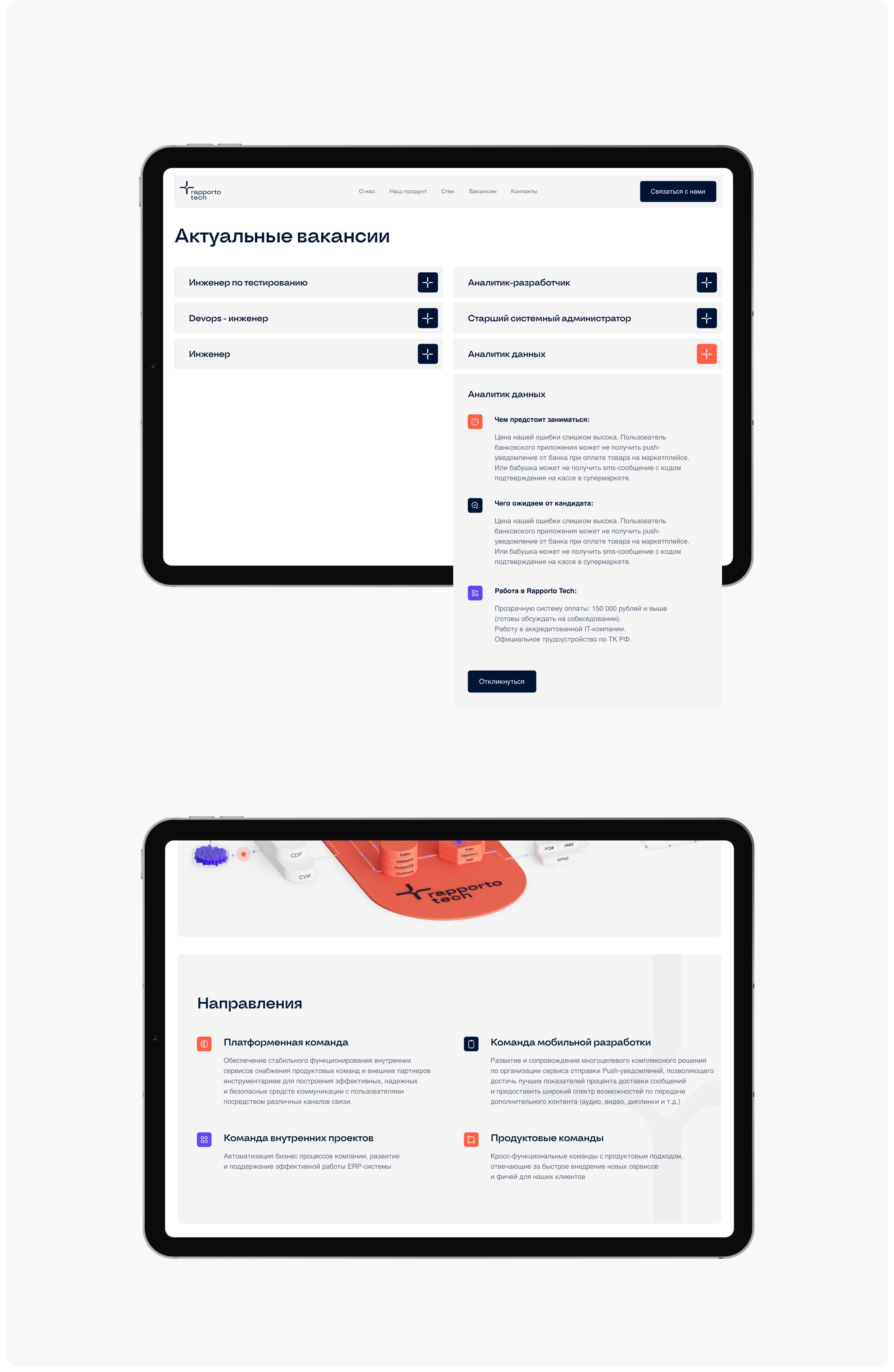 На этапе реализации мы уделили особое внимание адаптивности и производительности. Большое количество графики и сложных визуальных элементов требовало оптимизации, чтобы сохранить баланс между качеством и скоростью загрузки.