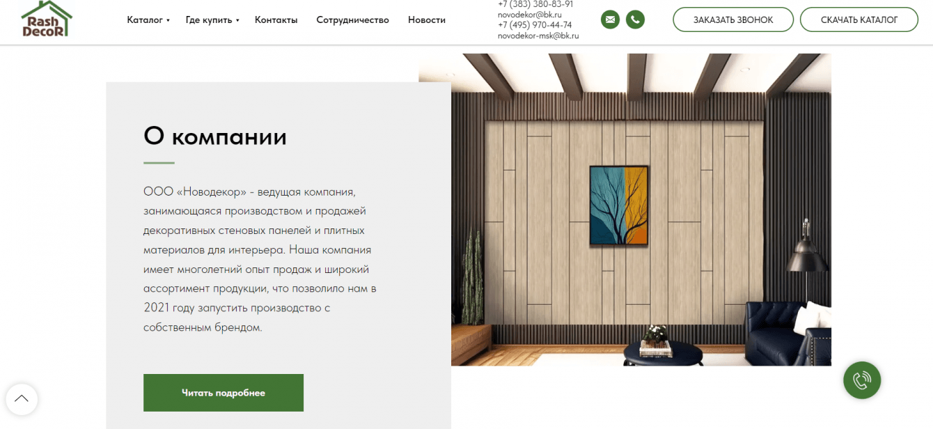 Разработка сайта для компании занимающаяся производством и продажей декоративных стеновых панелей и плитных материалов для интерьера.