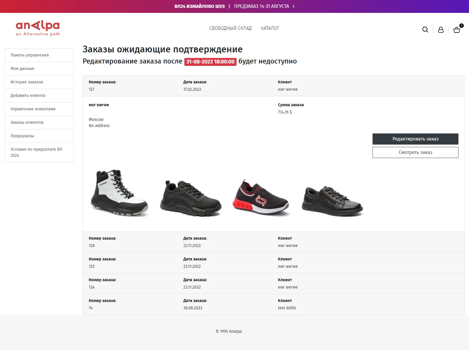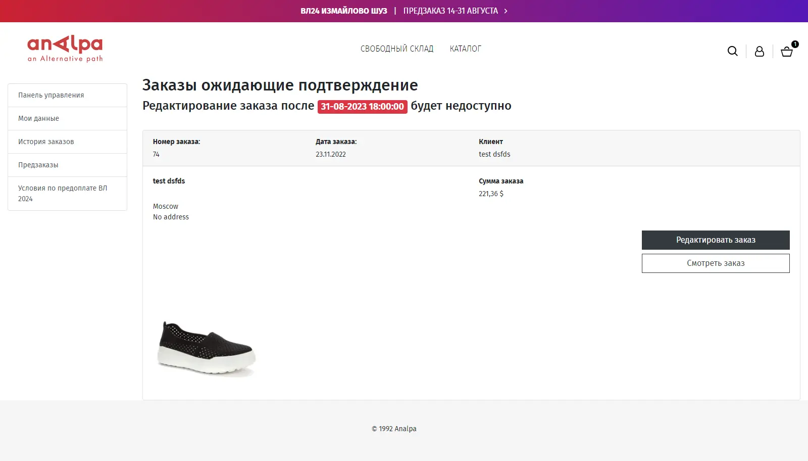 При оформлении заказа все заказы временно попадают в раздел "предзаказ". Оформление заказа для покупателя происходит стандартным образом и визуально не отличается от других заказов. После создания заказа клиент имеет возможность вносить изменения в заказ, такие как удаление позиции или добавление новых, в течение определенного периода времени до указанной даты. Кроме того, клиент может сразу отправить заказ менеджеру, который окончательно подтвердит его.